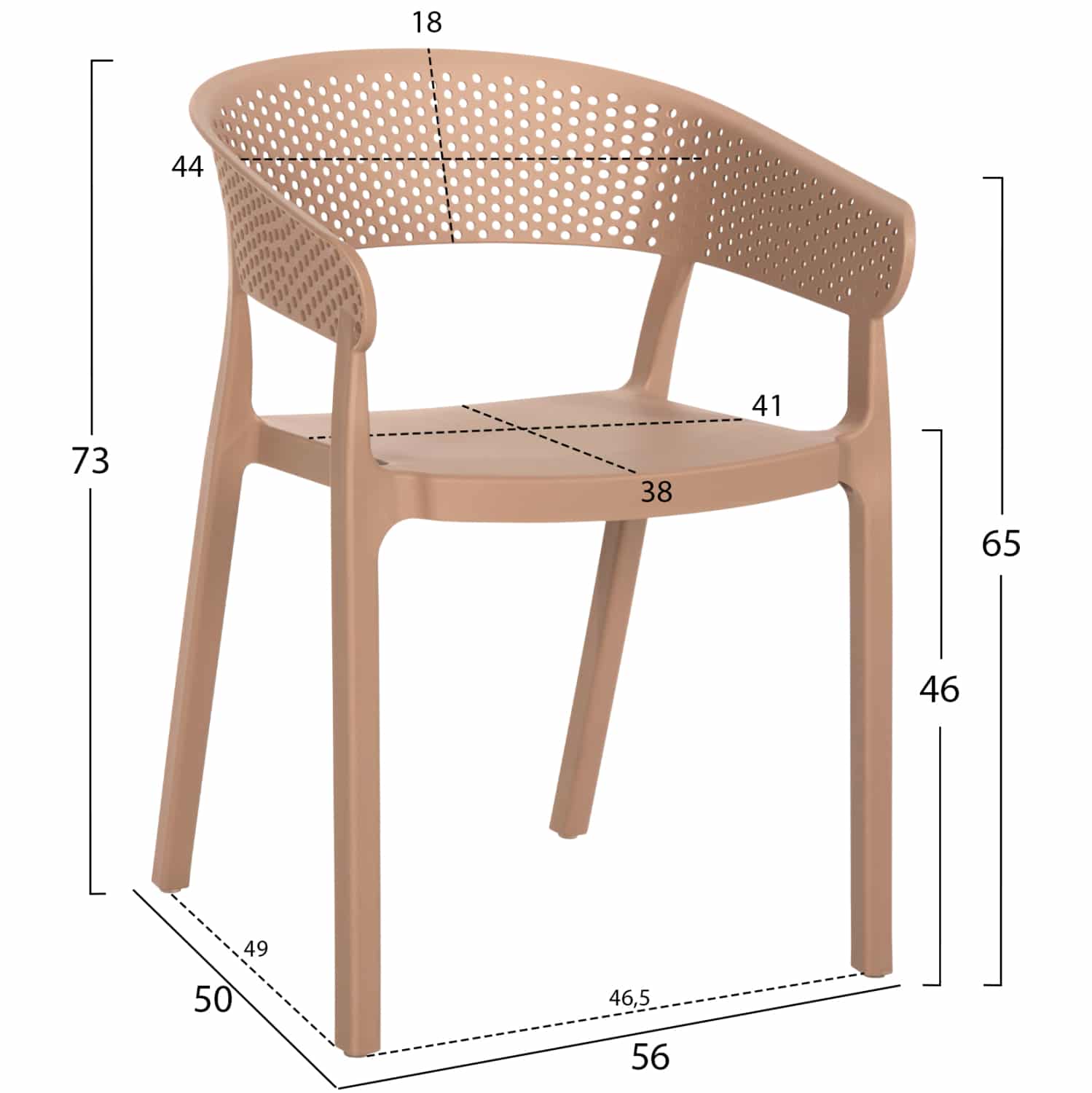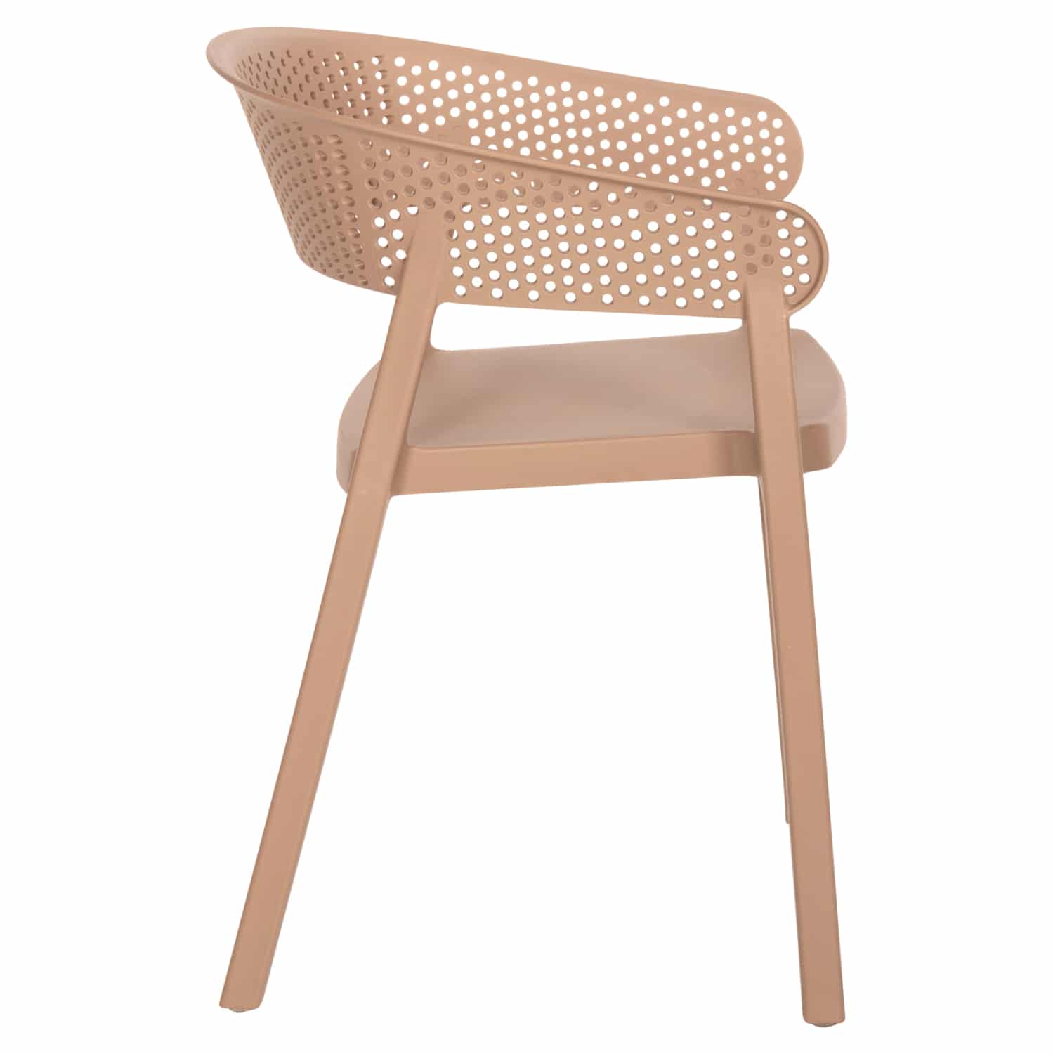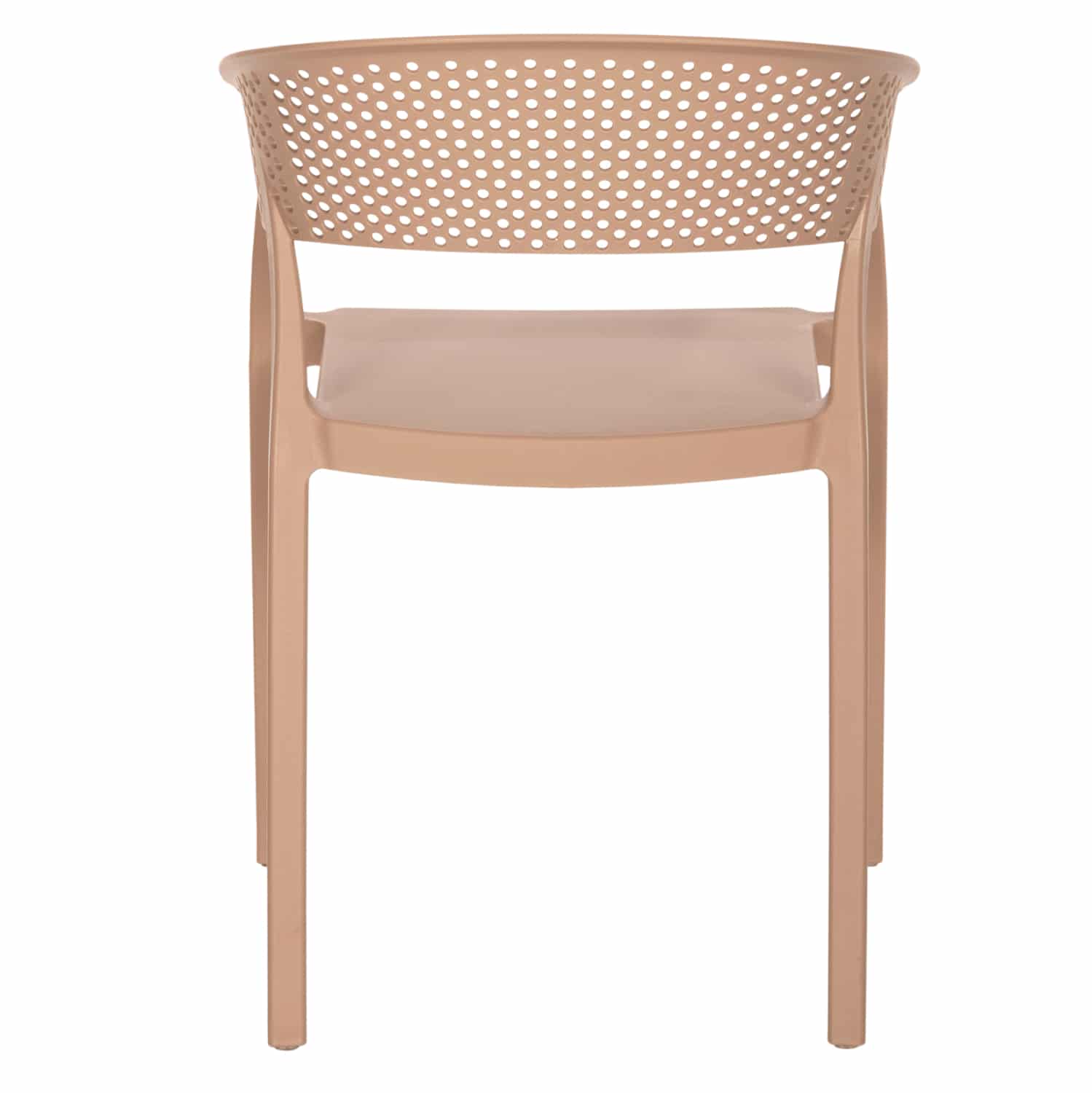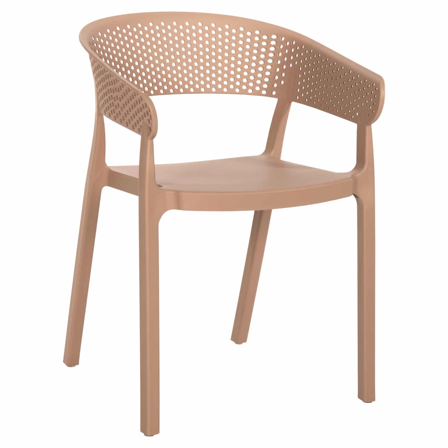 Πολυθρόνα πολυπροπυλενίου σε ΚΑΠΟΥΤΣΙΝΟ χρώμα. Ιδανική πρόταση για χρήση σε εξωτερικούς χώρους, είτε επαγγελματικούς (χώροι δεξιώσεων, εταιρείες catering, κλπ.) είτε για το σπίτι. Η πολυθρόνα αποτελείται από ένα λείο κάθισμα και μια ημικυκλική, ανεξάρτητη και «τρυπητή» πλάτη και μπράτσα. Είναι πανέμορφη και θα αναβαθμίσει αισθητικά κάθε εξωτερικό χώρο.