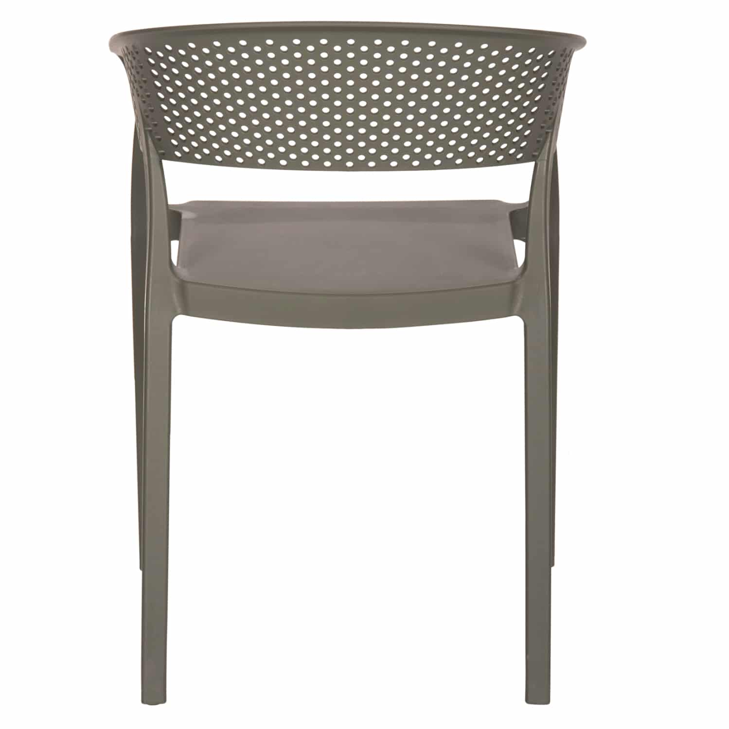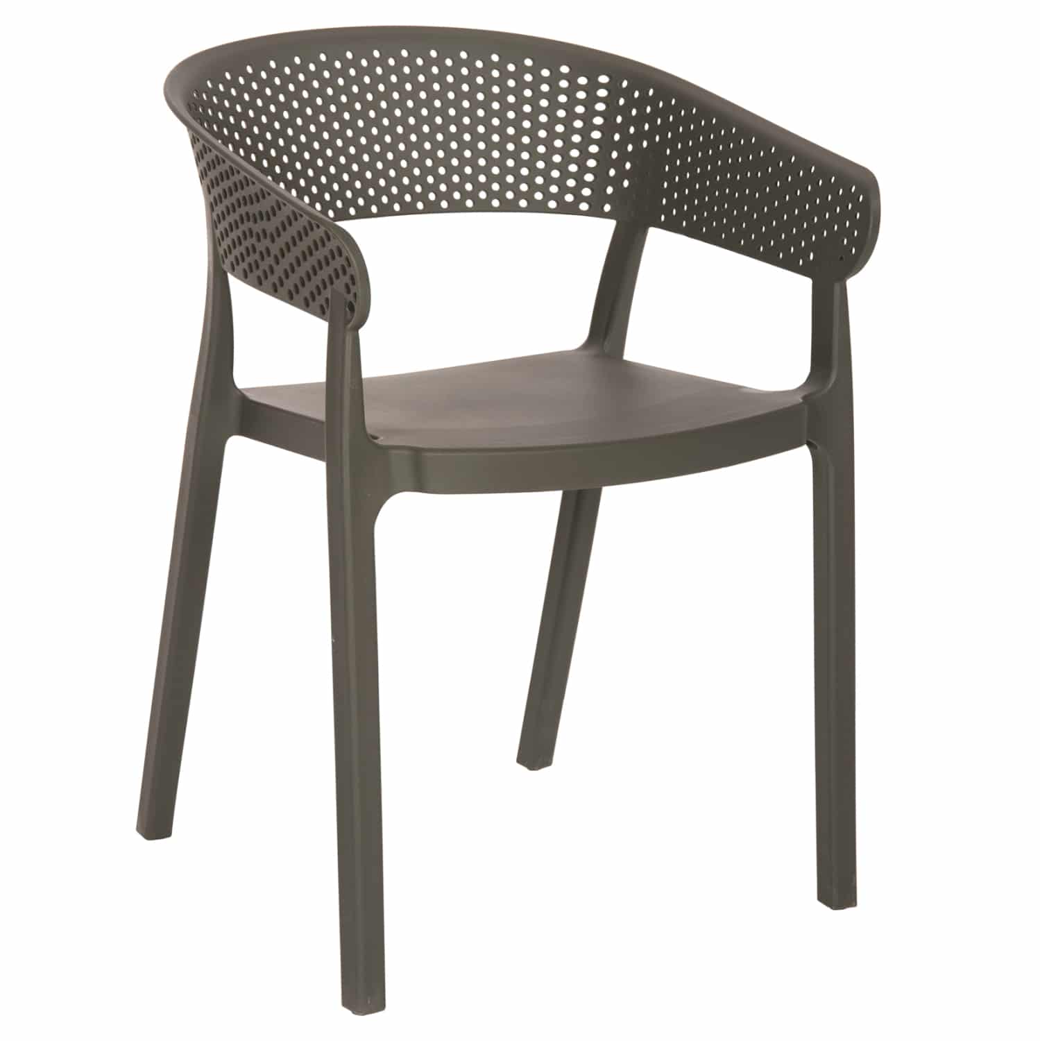 Πολυθρόνα πολυπροπυλενίου σε DARK OLIVE χρώμα. Ιδανική πρόταση για χρήση σε εξωτερικούς χώρους, είτε επαγγελματικούς (χώροι δεξιώσεων, εταιρείες catering, κλπ.) είτε για το σπίτι. Η πολυθρόνα αποτελείται από ένα λείο κάθισμα και μια ημικυκλική, ανεξάρτητη και «τρυπητή» πλάτη και μπράτσα. Είναι πανέμορφη και θα αναβαθμίσει αισθητικά κάθε εξωτερικό χώρο.