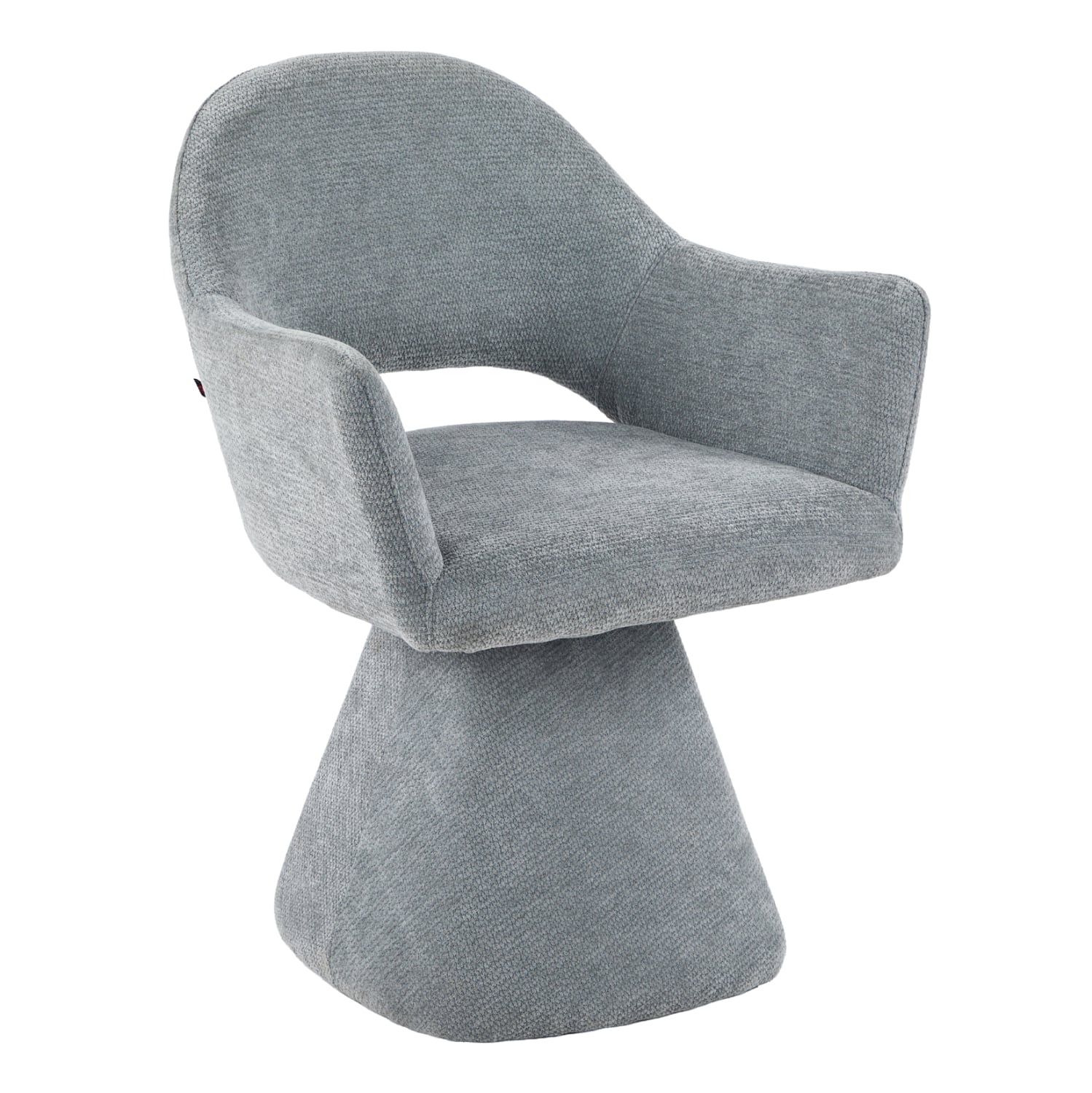Σας παρουσιάζουμε την SIMA. Μια premium περιστρεφόμενη πολυθρόνα τραπεζαρίας που συνδυάζει κομψότητα και λειτουργικότητα σε απόλυτη ισορροπία. Επενδυμένη εξολοκλήρου με λινό ύφασμα σε ΓΚΡΙ απόχρωση, αποπνέει φωτεινότητα και διαχρονική φινέτσα. Η ενιαία πλάτη που συνεχίζει ομαλά στα μπράτσα δημιουργεί ένα αρμονικό κάθισμα που προσφέρει αίσθηση άνεσης και πολυτέλειας. Η κωνική, πυραμιδοειδής βάση αντικαθιστά τα κλασικά πόδια, προσδίδοντας αρχιτεκτονικό χαρακτήρα, ενώ η περιστροφή 360° χωρίς επαναφορά ενισχύει την ελευθερία κίνησης και τη σύγχρονη εμπειρία χρήσης.