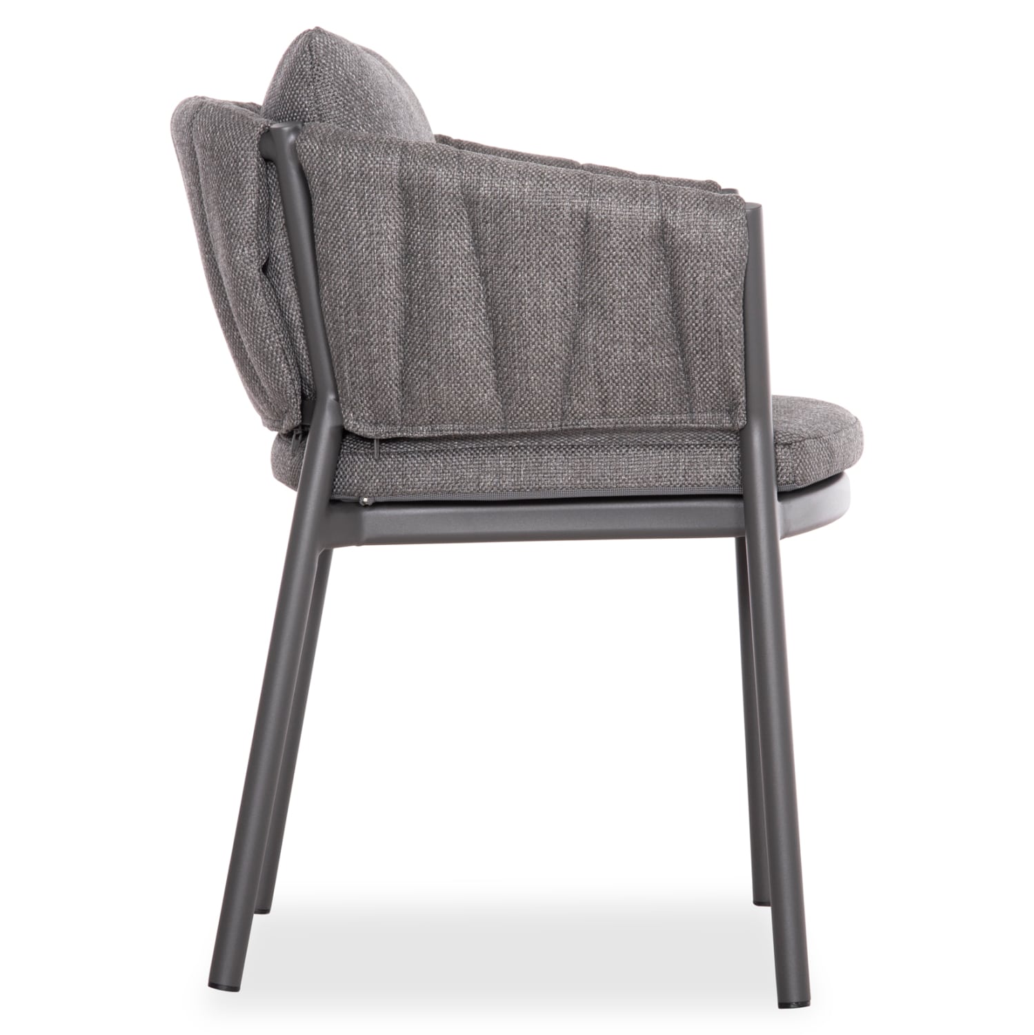 Η πολυθρόνα αλουμινίου SHANKS σε ΣΚΟΥΡΟ ΓΚΡΙ χρώμα έχει ημικυκλική πλάτη και διαθέτει μαξιλάρια πλάτης και καθίσματος. Αισθητικά, είναι επενδυμένη με ύφασμα OLEFIN, ενώ και τα καλύμματα στα μαξιλάρια είναι με OLEFIN ύφασμα, όλα σε ΣΚΟΥΡΟ ΓΚΡΙ χρώμα. Εσείς το μόνο που έχετε να κάνετε είναι να βρείτε το κατάλληλο τραπέζι για να ταιριάξετε αυτή την υπέροχη πολυθρόνα.
