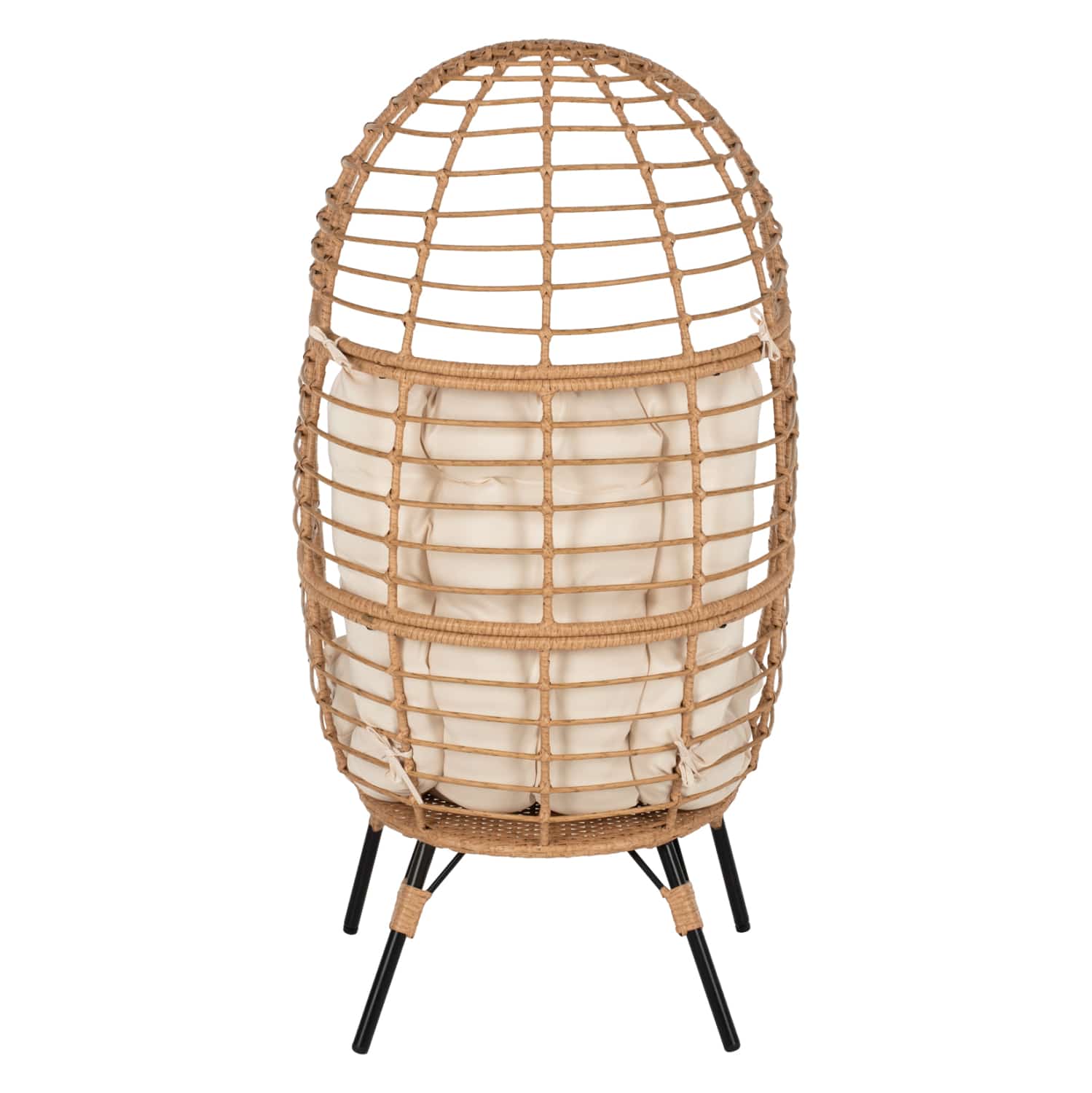 Ολόκληρη η υπόλοιπη πολυθρόνα είναι επενδυμένη από συνθετικό rattan. Στα περισσότερα έπιπλα κήπου και γενικά σε έπιπλα για εξωτερικούς χώρους χρησιμοποιείται συνθετικό υλικό από PVC, δηλαδή τεχνητές ίνες υψηλής ποιότητας. Αυτό δίνει στην κατασκευή εξαιρετική αντοχή και ανθεκτικότητα σε ακραίες συνθήκες ζέστης ή κρύου.