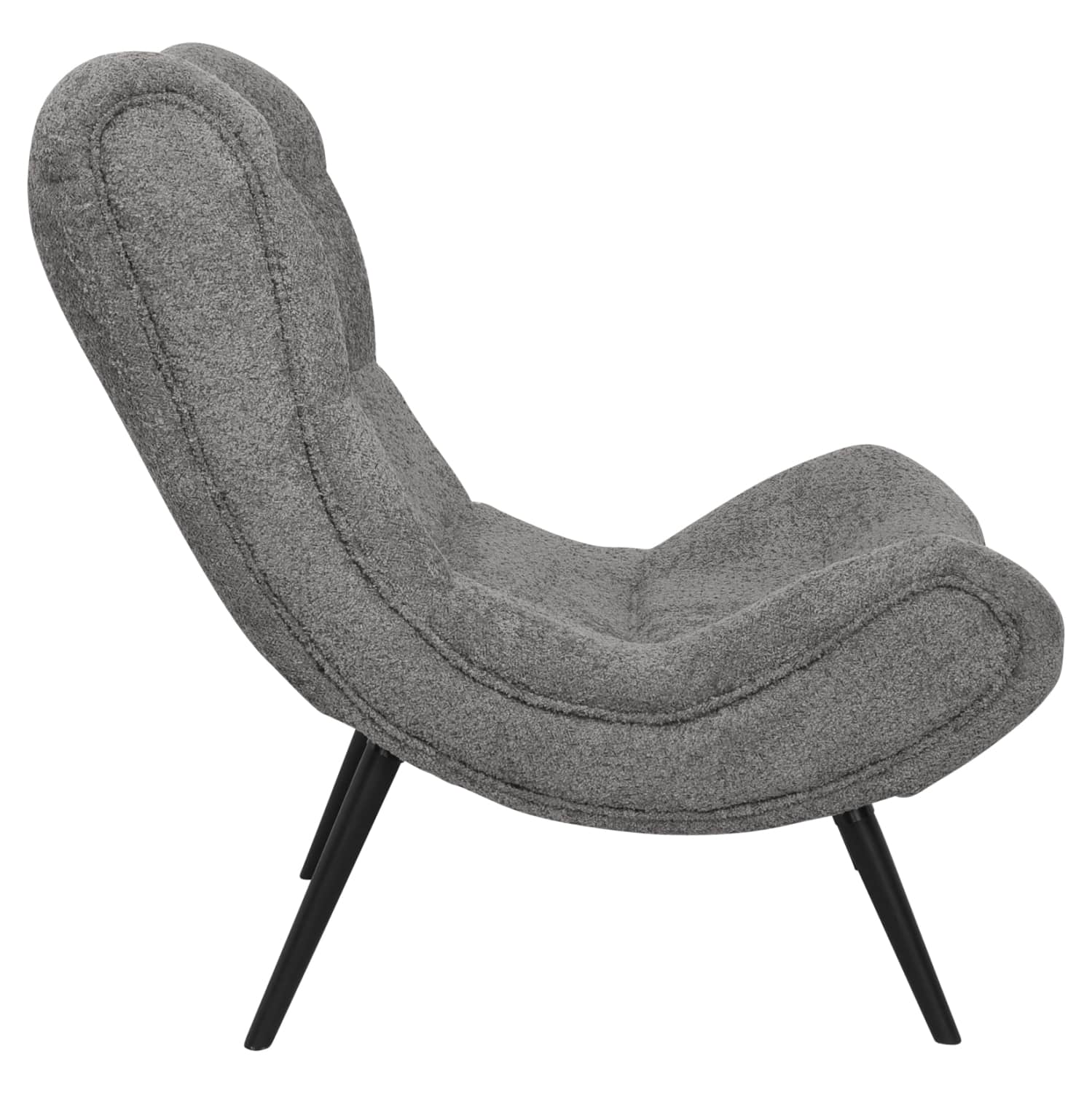 Αυτή είναι η πολυθρόνα BRYM σε ΓΚΡΙ χρώμα με μαύρα ξύλινα πόδια. Δεν διαθέτει μπράτσα και ο σχεδιασμός της με την μόνιμη ανάκλιση και την ψηλή πλάτη την καθιστά εξαιρετικά αναπαυτική. Το μπουκλέ ύφασμα της επένδυσης προσφέρει μια ζεστή αίσθηση που θα λατρέψετε!
