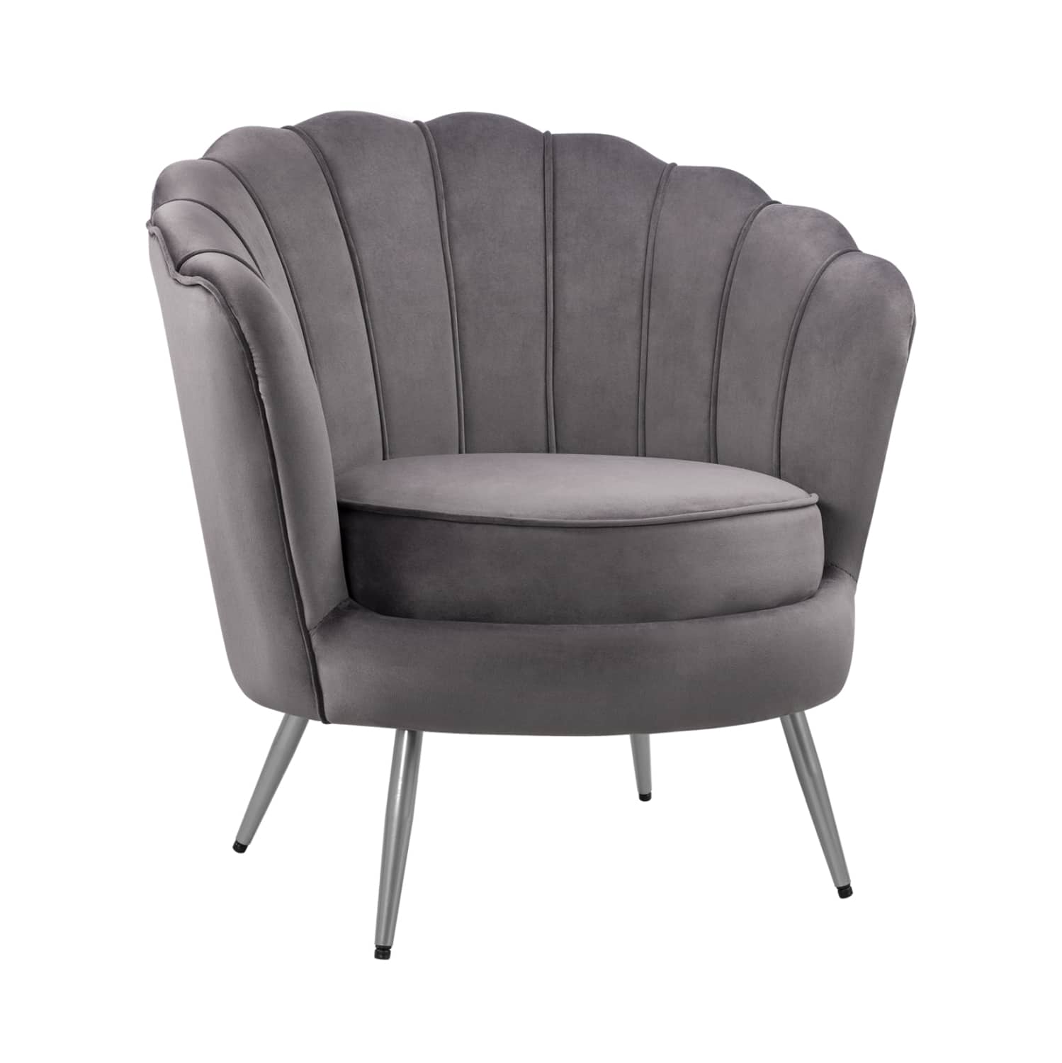 Η πολυθρόνα COQUILLE είναι ξεχωριστή! Μοντέρνα, άνετη και όμορφη! Το κυρίαρχο χρώμα είναι το ουδέτερο ΓΚΡΙ, ενώ τα 4 πόδια είναι σε ασημί χρώμα(χρωμιωμένα). Το στρογγυλό design της πολυθρόνας είναι άνετο και δίνει την εντύπωση ανοιχτού λουλουδιού με τις κάθετες καπιτονέ ραφές. Αυτό της δίνει αυτή την πολύ ιδιαίτερη όψη, ενώ η πολυθρόνα δίνει την αίσθηση ότι αγκαλιάζει το σώμα. Πρόκειται για μια πρόταση λιτή που θα ταιριάξει σχεδόν παντού!