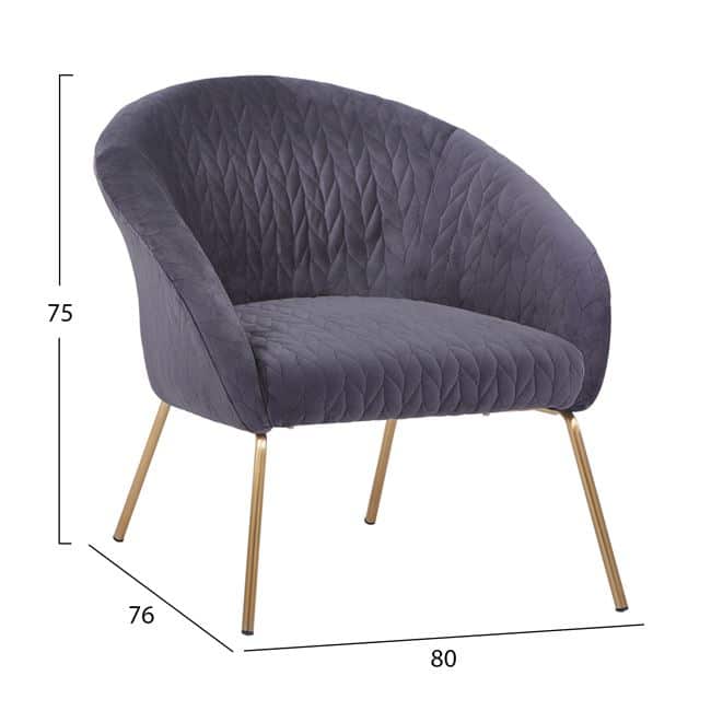 ΠΟΛΥΘΡΟΝΑ JOYCE ΒΕΛΟΥΔΟ ΓΚΡΙ ΚΑΙ ΜΕΤΑΛΛΙΚΑ ΠΟΔΙΑ HM8549.01 80X76X75Y εκ. HM8549.01