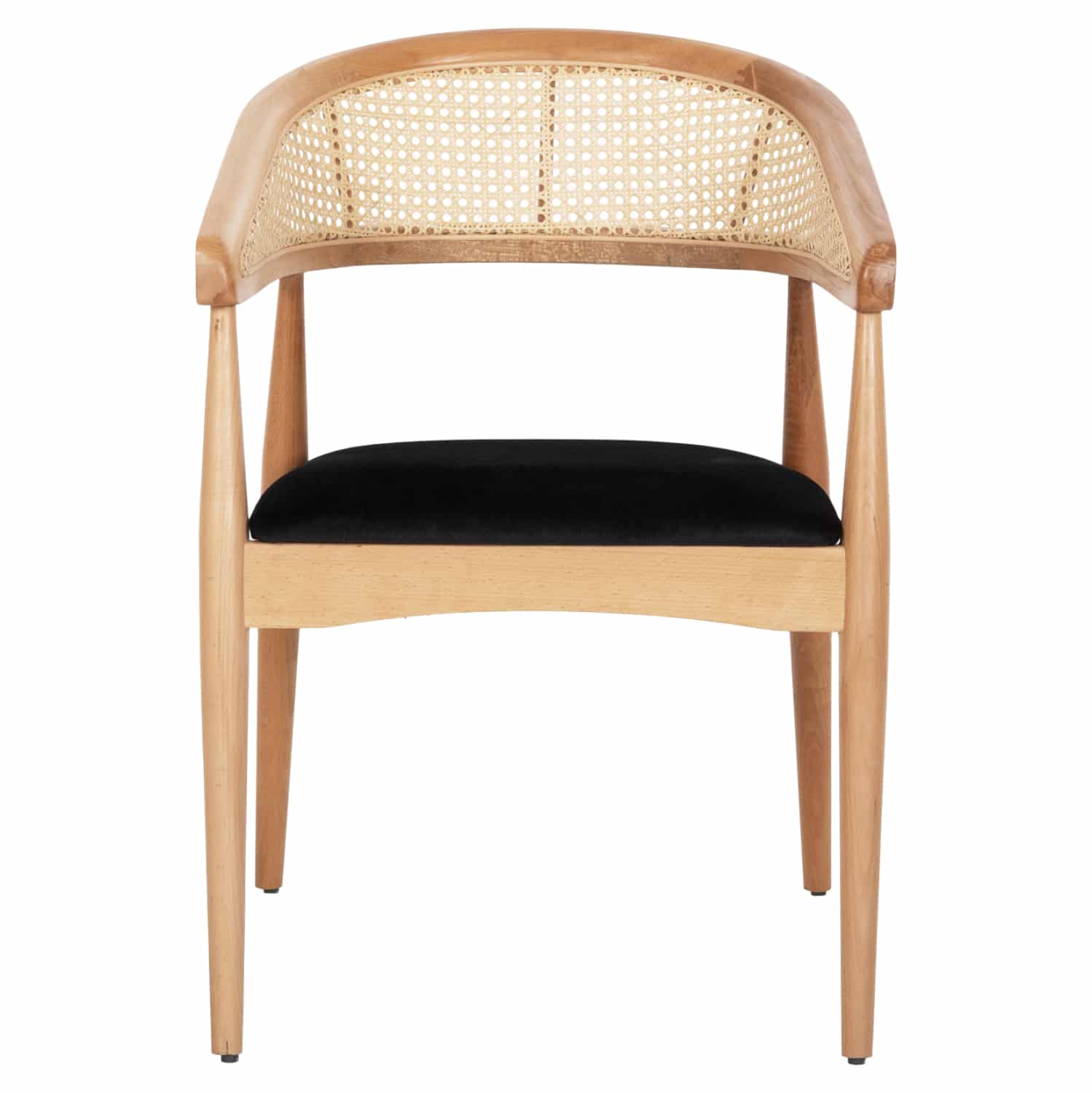 Η πολυθρόνα KOMODUS είναι μια ξεχωριστή προσθήκη στην γκάμα μας. Ουσιαστικά δεν έχει ξεχωριστά μπράτσα αλλά ο σχεδιασμός της πλάτης είναι κυρτός αγκαλιάζοντας το σώμα δίνοντας της αίσθηση μπράτσων. Πρόκειται για μια πανέμορφη πολυθρόνα. Ο σκελετός της είναι από ποιοτικό ξύλο σε ΦΥΣΙΚΟ χρώμα, ενώ η επένδυση της πλάτης είναι από rattan σε wicker πλέξη. Το κάθισμα είναι από απαλό ύφασμα σε ΜΑΥΡΟ χρώμα, δίνοντας έναν διαφορετικό χρωματικό τόνο.