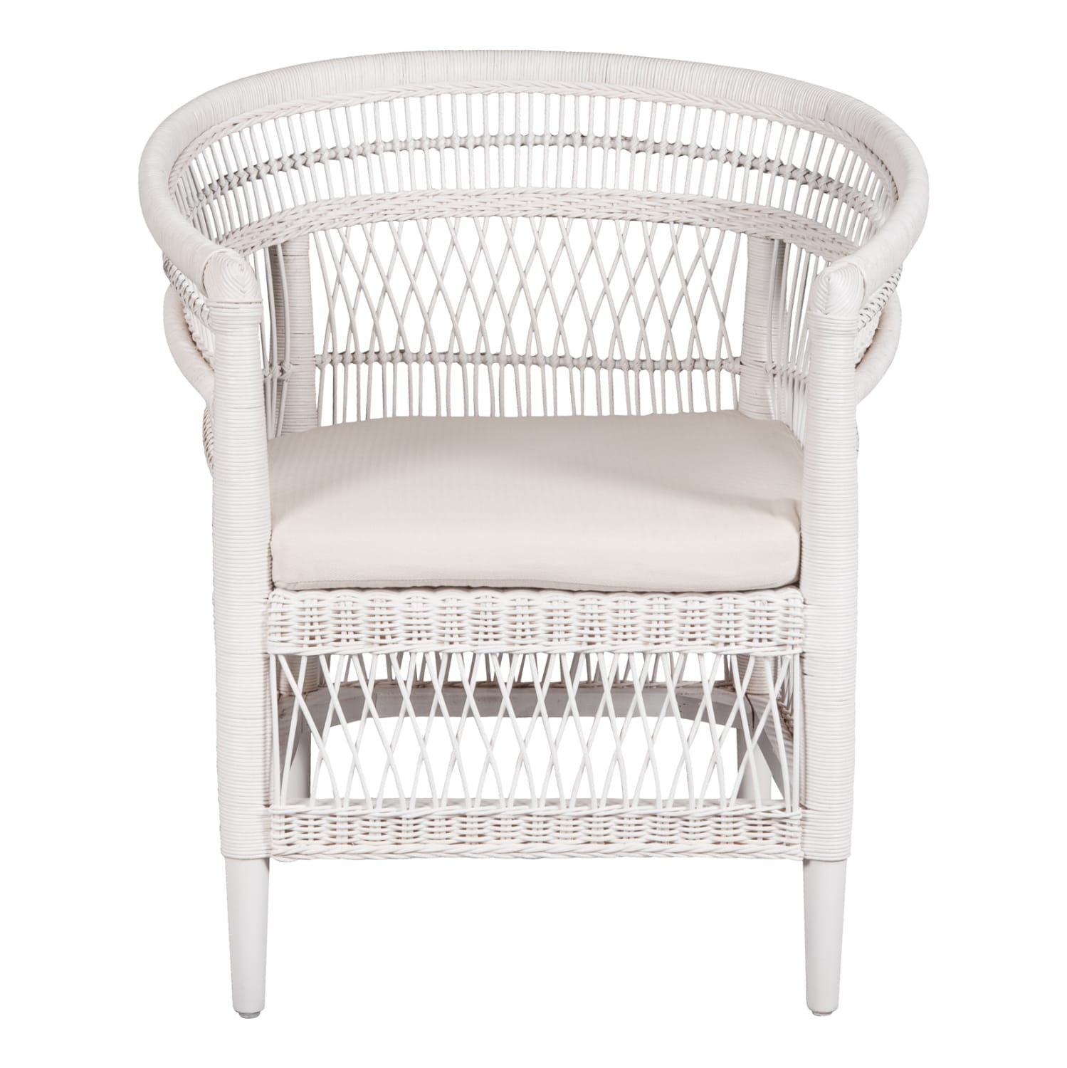 Η πολυθρόνα MALAWI είναι πανέμορφη! Μοντέρνα, άνετη και σταθερή με κυρίαρχο χρώμα το ΛΕΥΚΟ. Το ημικυκλικό κάθισμα της πολυθρόνας είναι άνετο και διαθέτει μαξιλάρι μέτριας σκληρότητας ενώ η πολυθρόνα δίνει την αίσθηση ότι αγκαλιάζει το σώμα. Αυτό όμως που τραβάει τα βλέμματα σε αυτή την πολυθρόνα είναι ότι η πλάτη με τα μπράτσα αποτελούν μια συνεχόμενη κατασκευή με επένδυση από RATTAN που δίνει μια αίσθηση μοναδικότητας στην πολυθρόνα!