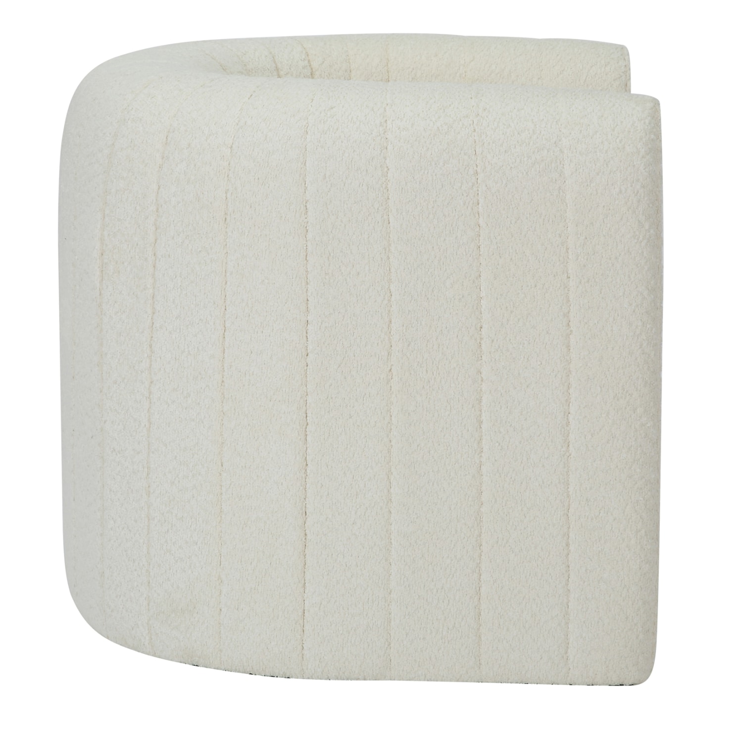 Ο σκελετός της πολυθρόνας είναι μεταλλικός με ηλεκτροστατική βαφή, ενώ ολόκληρη η επένδυση έχει γίνει με μπουκλέ ύφασμα εξαιρετικής ποιότητας και υφής. Μπουκλέ λέγεται οποιοδήποτε ύφασμα που έχει κόμπο-μπούκλα στην ύφανσή του. Κατασκευάζεται από σχεδόν όλες τις πρώτες ύλες (αν και συνήθως είναι συνθετικό) με ειδικές κλωστές με κόμπους ή πολύ στριμμένα νήματα, έτσι ώστε να έχει σγουρή επιφάνεια. Δεν τσαλακώνει και μπορεί να είναι μονόχρωμο, μελανζέ ,καρώ ή τουιντ.