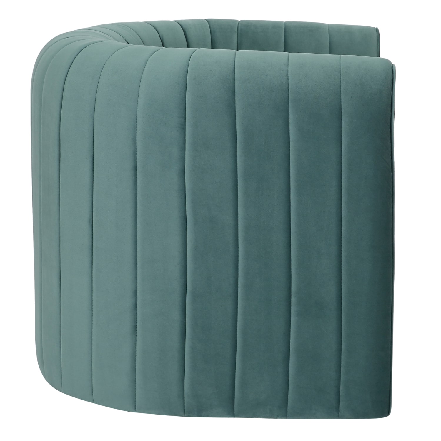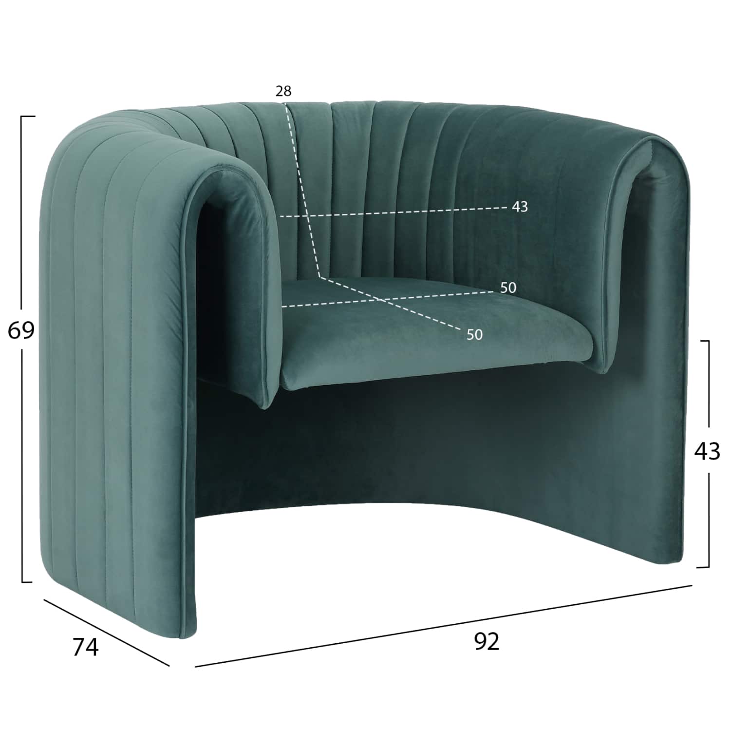 Η πολυθρόνα εσωτερικού χώρου RIKER σε MENTA χρώμα είναι μοντέρνα και πανέμορφη. Το χαρακτηριστικό που κάνει αυτή την πολυθρόνα να ξεχωρίζει είναι οι καμπύλες του μεταλλικού σκελετού που σχηματίζουν την ημικυκλική πλάτη με τα μπράτσα και όλη η κατασκευή φτάνει μέχρι κάτω δημιουργώντας ουσιαστικά και τα πόδια της πολυθρόνας ως φυσική συνέχεια του design. Μια πολυθρόνα με βελούδινη επένδυση που είναι σίγουρο ότι θα μαγνητίσει το ενδιαφέρον όλων.