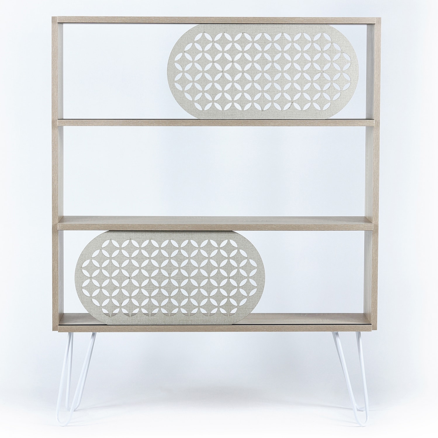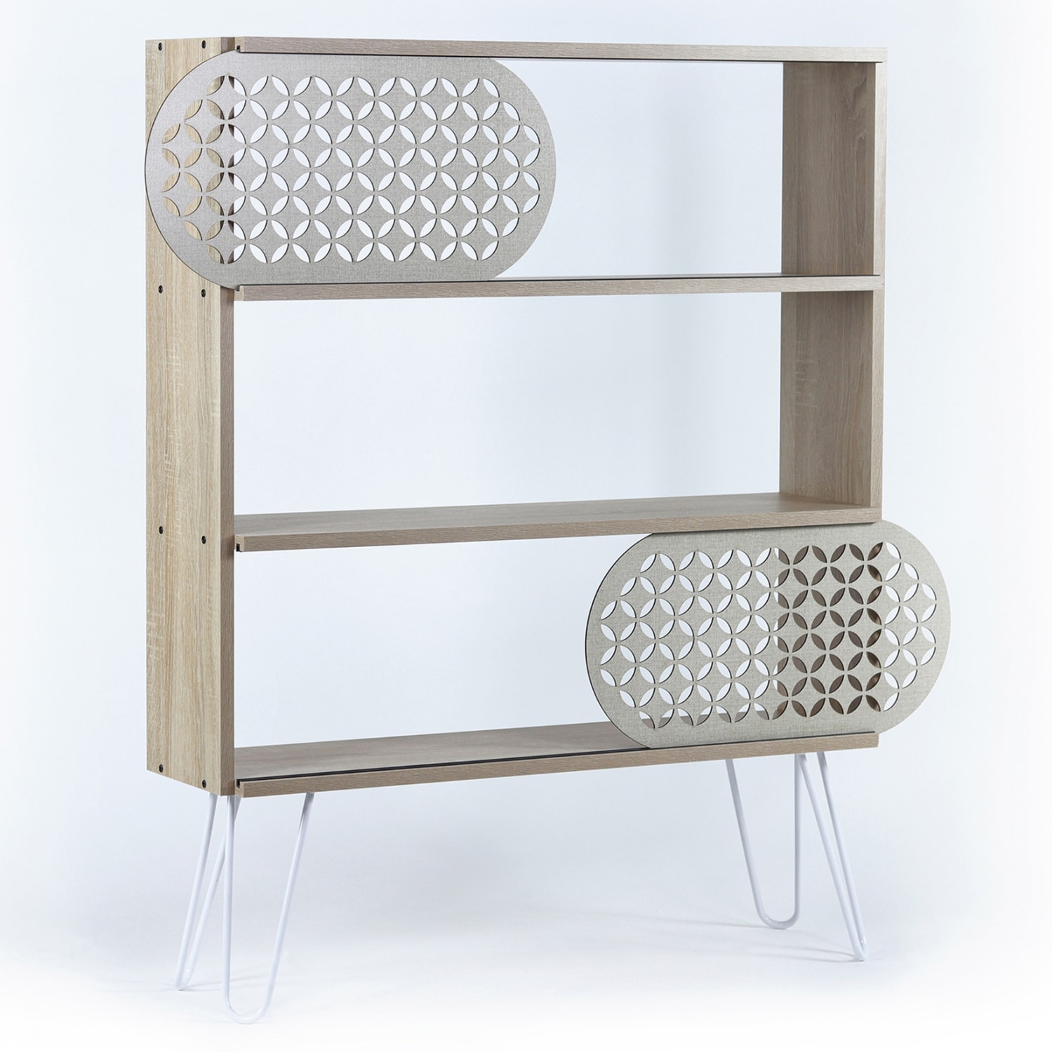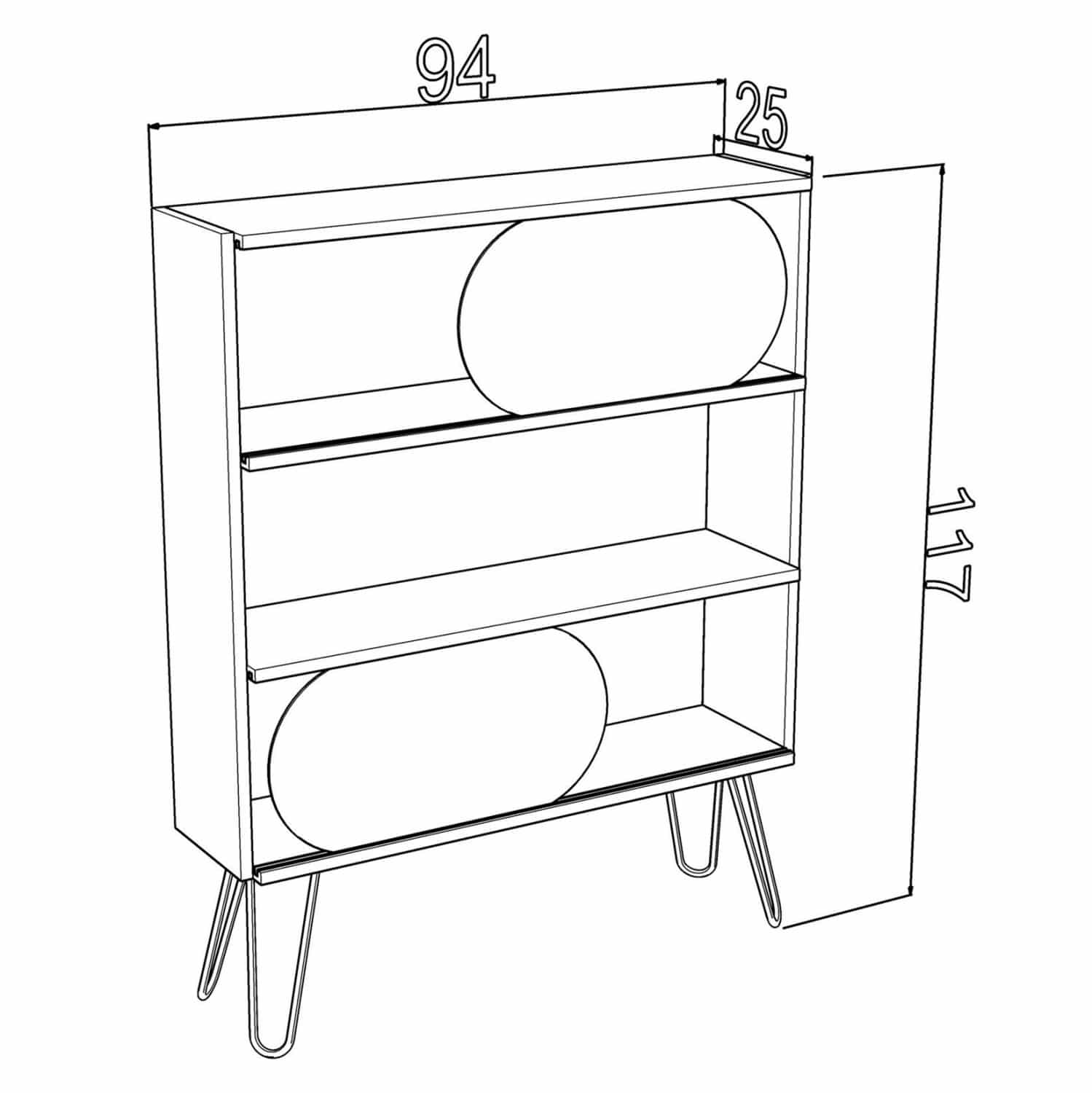 Διαθέτει 3 επιφάνειες αποθήκευσης βιβλίων και άλλων αντικειμένων με δυο συρόμενα πορτάκια.