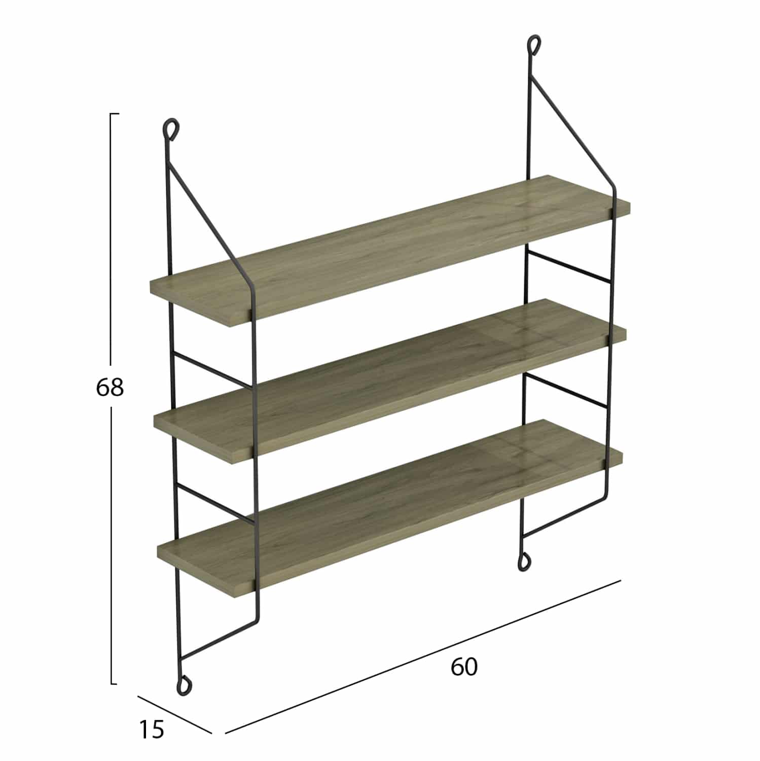 ΡΑΦΙΕΡΑ ΤΟΙΧΟΥ ACHALA ΜΕΛΑΜΙΝΗΣ HM9185.12 OLIVE GREY 60x15x68Y εκ. HM9185.12