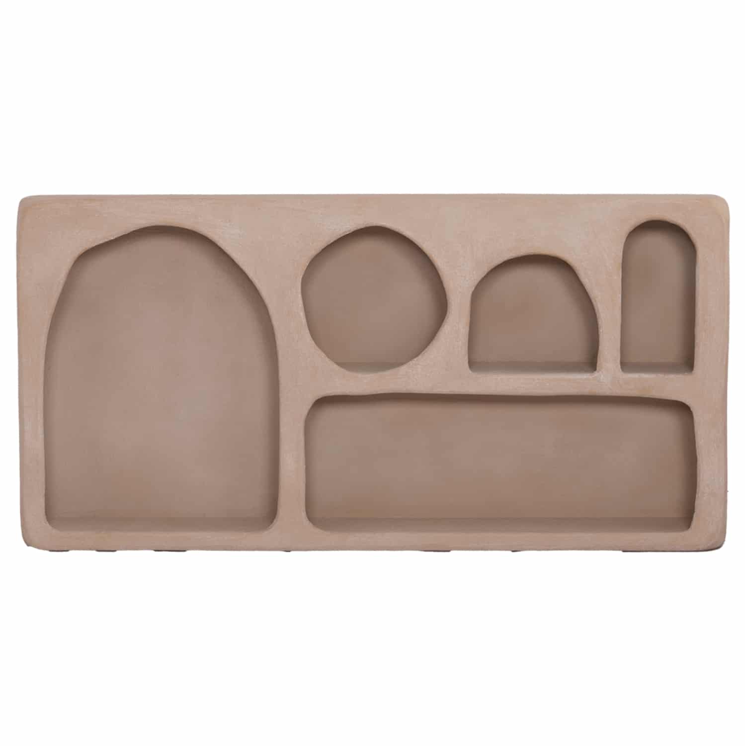 Το χειροποίητο ράφι τοίχου SANTORINI είναι εξολοκλήρου κατασκευασμένο από MDF με υφή σαγρέ τσιμέντου, ακολουθώντας την τελευταία τάση στο interior design, σε ΚΑΦΕ χρώμα. Διαθέτει 5 ανοιχτούς χώρους διάφορων μεγεθών για αποθήκευση ή τοποθέτηση αντικειμένων. Αυτό το ράφι είναι κομψό και όμορφο και θα δώσει μια επιπλέον επιλογή για να ολοκληρώσετε την “νησιωτικού” στυλ διακόσμησή σας.