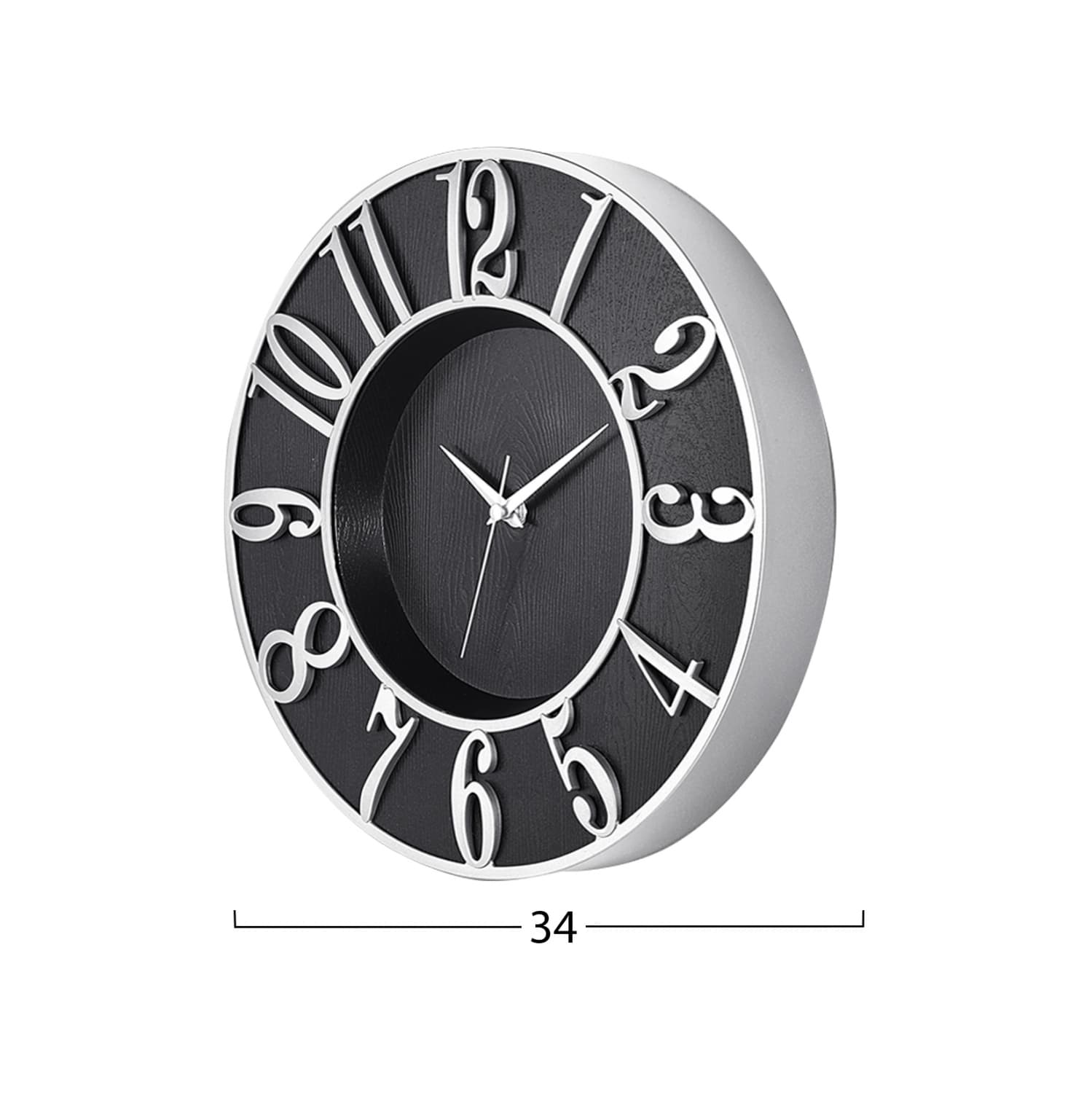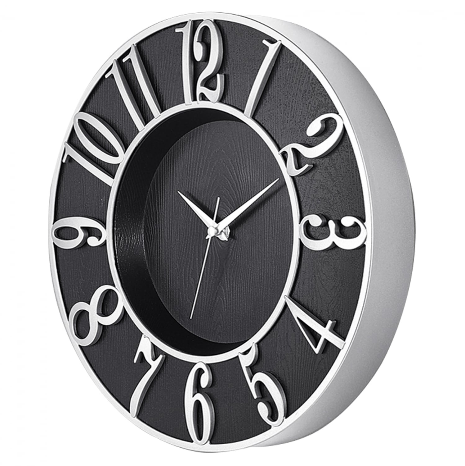 Ρολόι τοίχου σε μαύρη με ασημί απόχρωση.