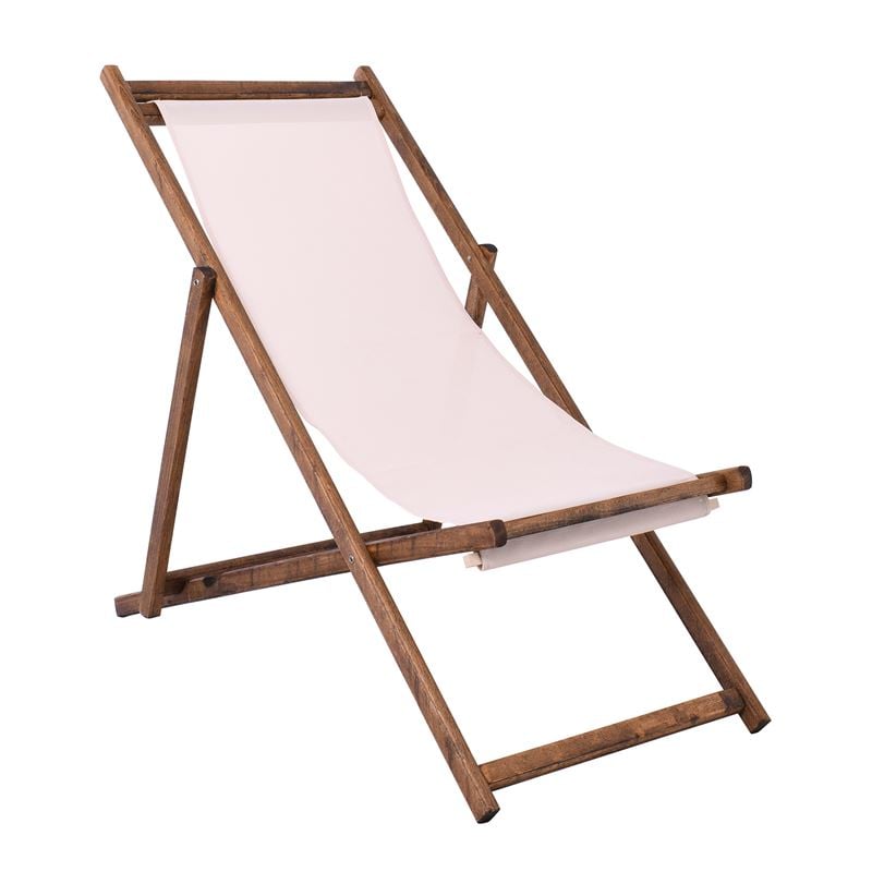 Σαιζ-Λόνγκ Ξαπλώστρα 3 θέσεων κλίσης, Οξιά Καρυδί – Textilene Εκρού, Πτυσσόμενη 56x100x80/98cm