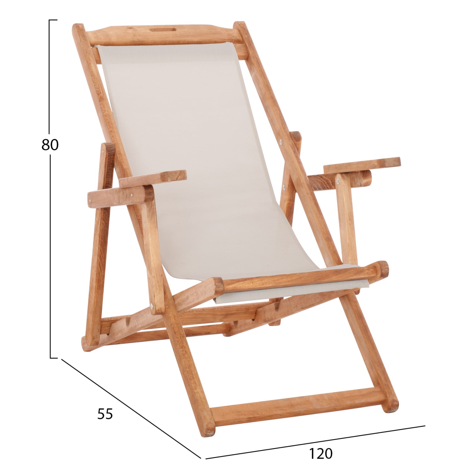 Σεζλόνγκ Λήμνος με μπράτσα σε φυσική απόχρωση και pvc εκρου 62,5x97x105 εκ.