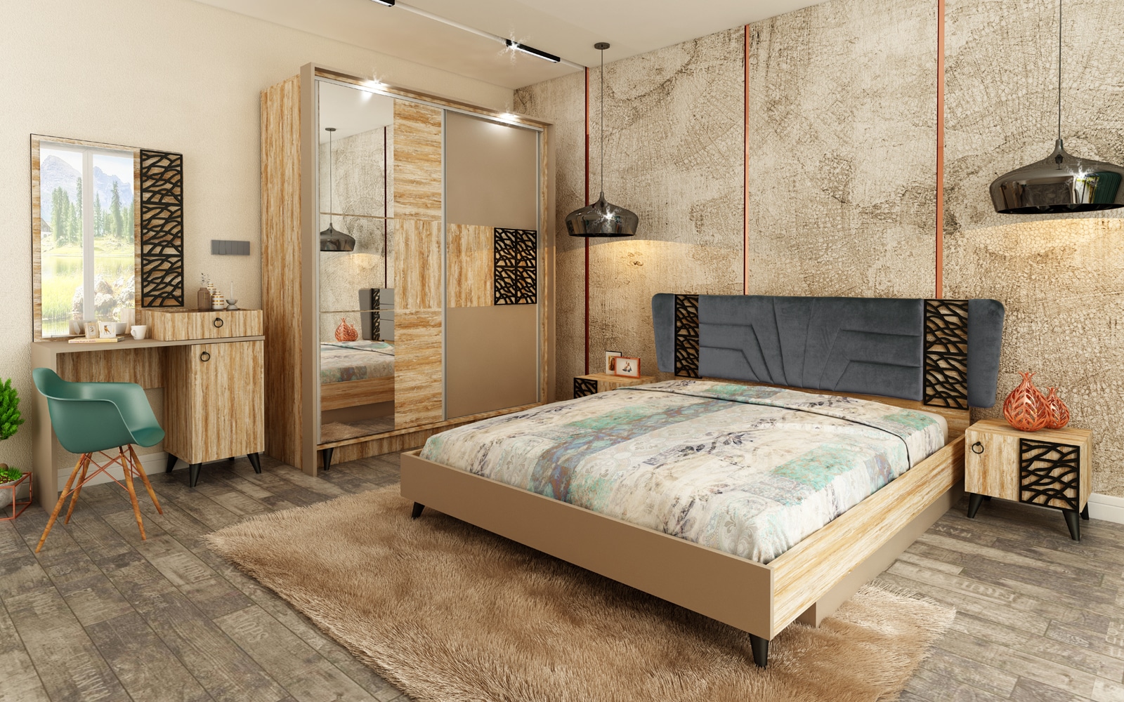 Το σετ κρεβατοκάμαρας Ego είναι δημιουργημένο σε γήινα χρώματα και είναι ιδιαίτερα εύχρηστο και ευρύχωρο. Το σετ κρεβατοκάμαρας Ego περιλαμβάνει 1 κρεβάτι διπλό, 2 κομοδίνα, 1 ντουλάπα και 1 συρταριέρα με καθρέφτη.