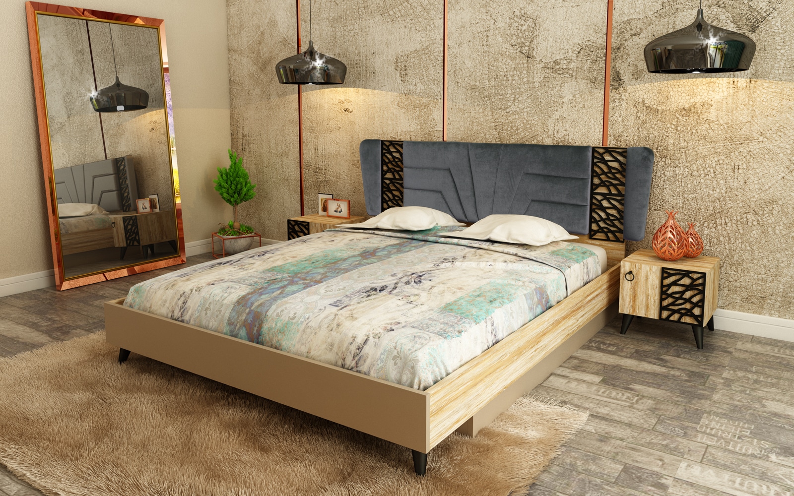 Σετ κρεβατοκάμαρας 3 τεμαχίων, διπλό κρεβάτι με 2 κομοδίνα, 160/200, Forest, Genomax