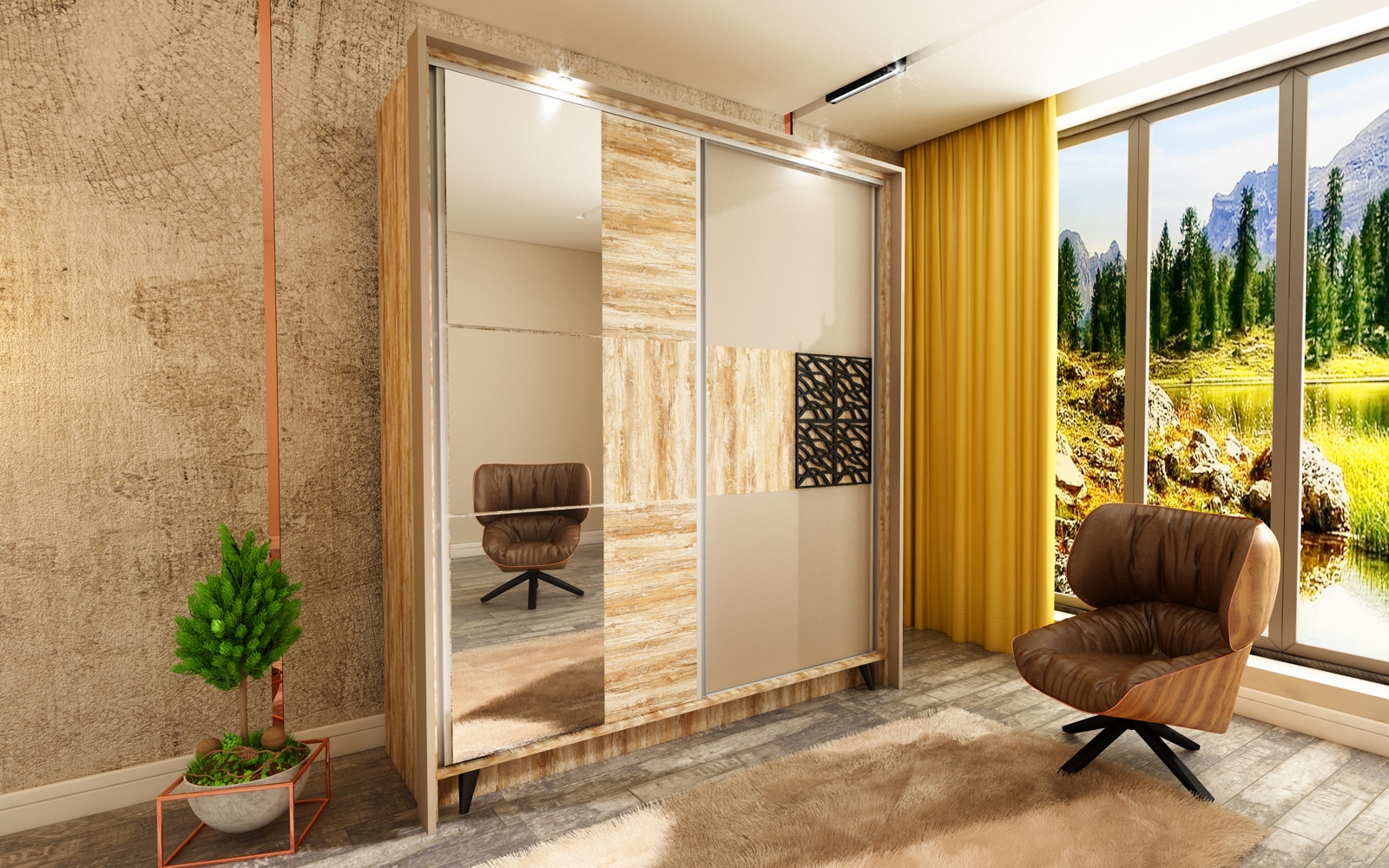 Διαστάσεις ντουλάπας: Μήκος: 180 Βάθος: 61.5 Ύψος: 211 εκ.