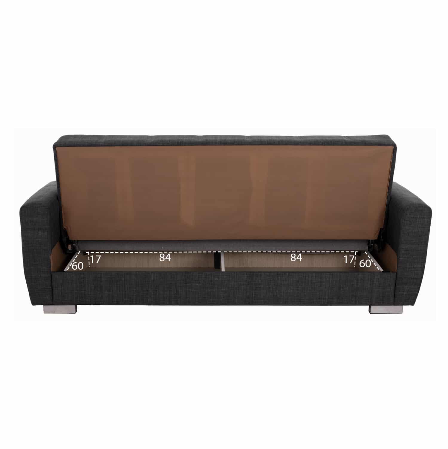 Το κύριο χαρακτηριστικό τους, όμως, είναι ότι πέφτει η πλάτη και μετατρέπονται σε ένα άνετο κρεβάτι για έκτακτες περιπτώσεις, μέσω ενός εύχρηστου μηχανισμού «κλικ-κλακ». Συνέπεια αυτού, βέβαια, είναι και η ύπαρξη αποθηκευτικού χώρου κάτω από το κάθισμα των καναπέδων, ο οποίος πάντα είναι χρήσιμος, ειδικά σε φοιτητικά σπίτια. Τέλος, τα πόδια τους είναι φαρδιά και χαμηλά δίνοντας στιβαρότητα σε όλη την κατασκευή.