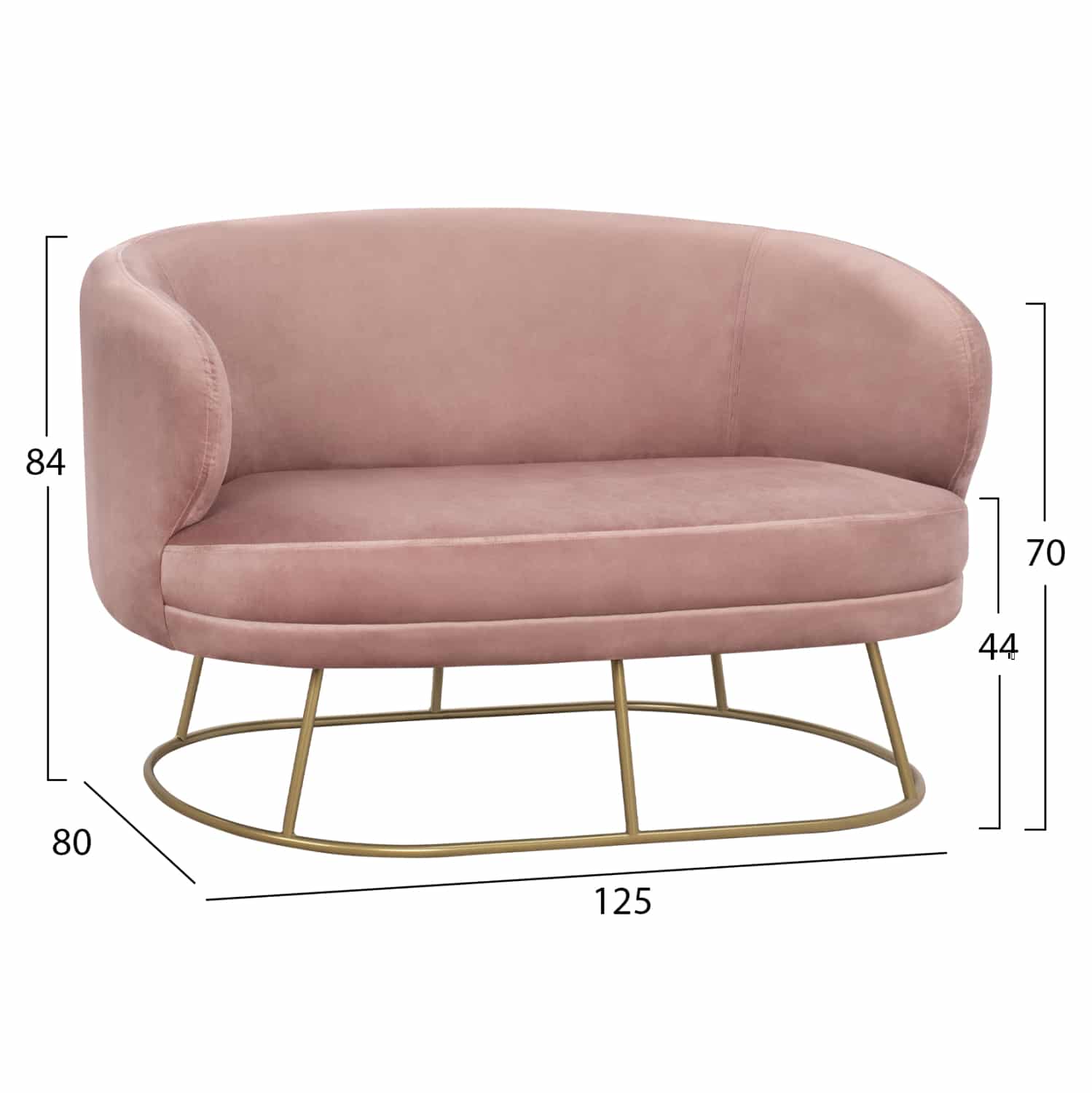 Καναπές διθέσιος ARIEN σε απόχρωση σάπιου μήλου με χρυσή μεταλλική βάση.
