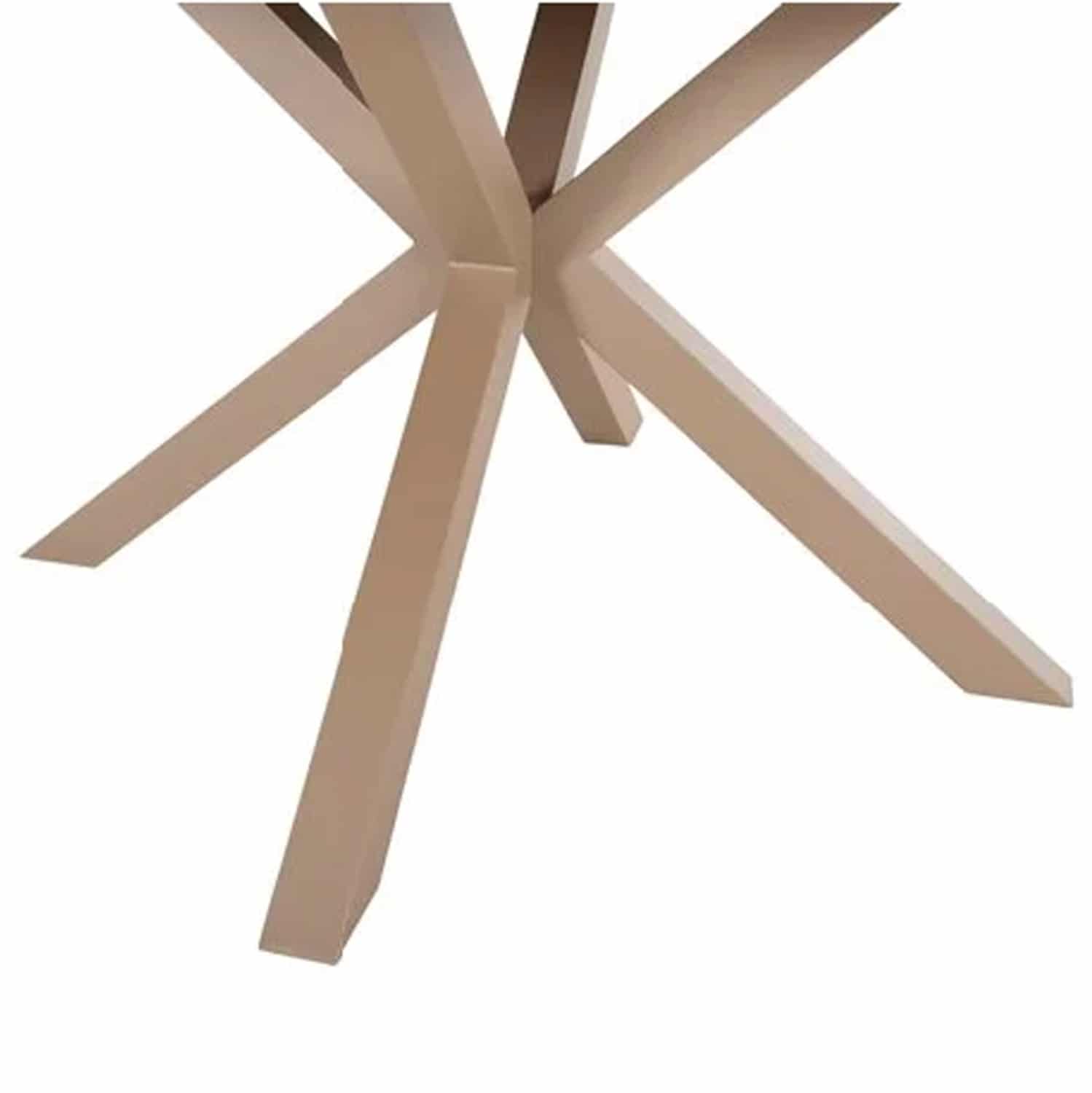 Ένα στρογγυλό τραπέζι με αλουμινένιο σκελετό σε ΣΑΜΠΑΝΙ χρώμα και επιφάνεια από polywood, και 4 πολυθρόνες αλουμινίου σε ΣΑΜΠΑΝΙ χρώμα με κάθισμα και πλάτη από polywood.