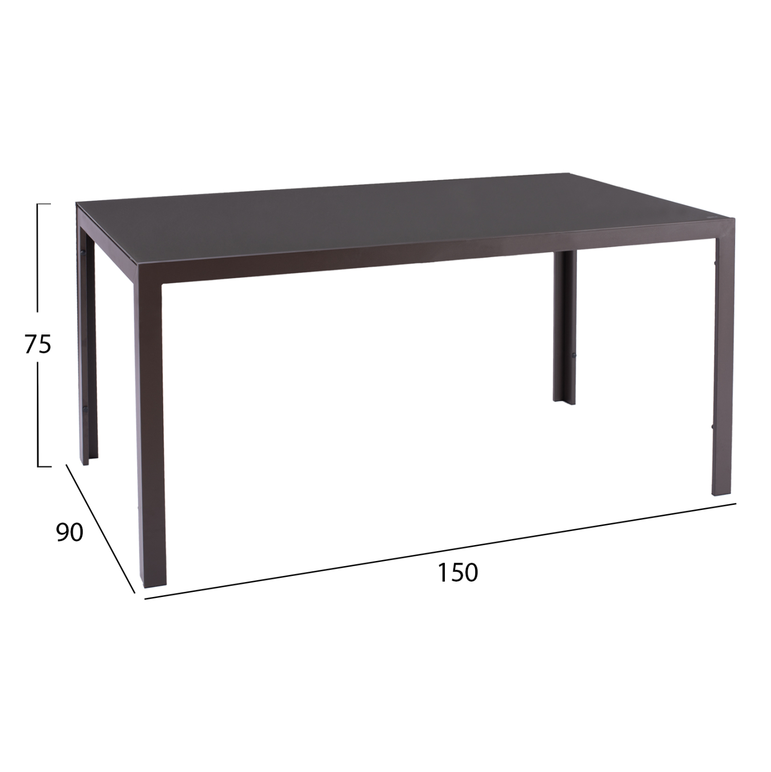 Το Σετ τραπεζαρίας εξωτερικού χώρου LEOFER αποτελείται από ένα τραπέζι με καφέ μεταλλικό σκελετό και γυάλινη ΕΝΙΣΧΥΜΕΝΗ επιφάνεια, kai 4 πολυθρόνες μεταλλικές με textilene σε καφέ χρώμα.