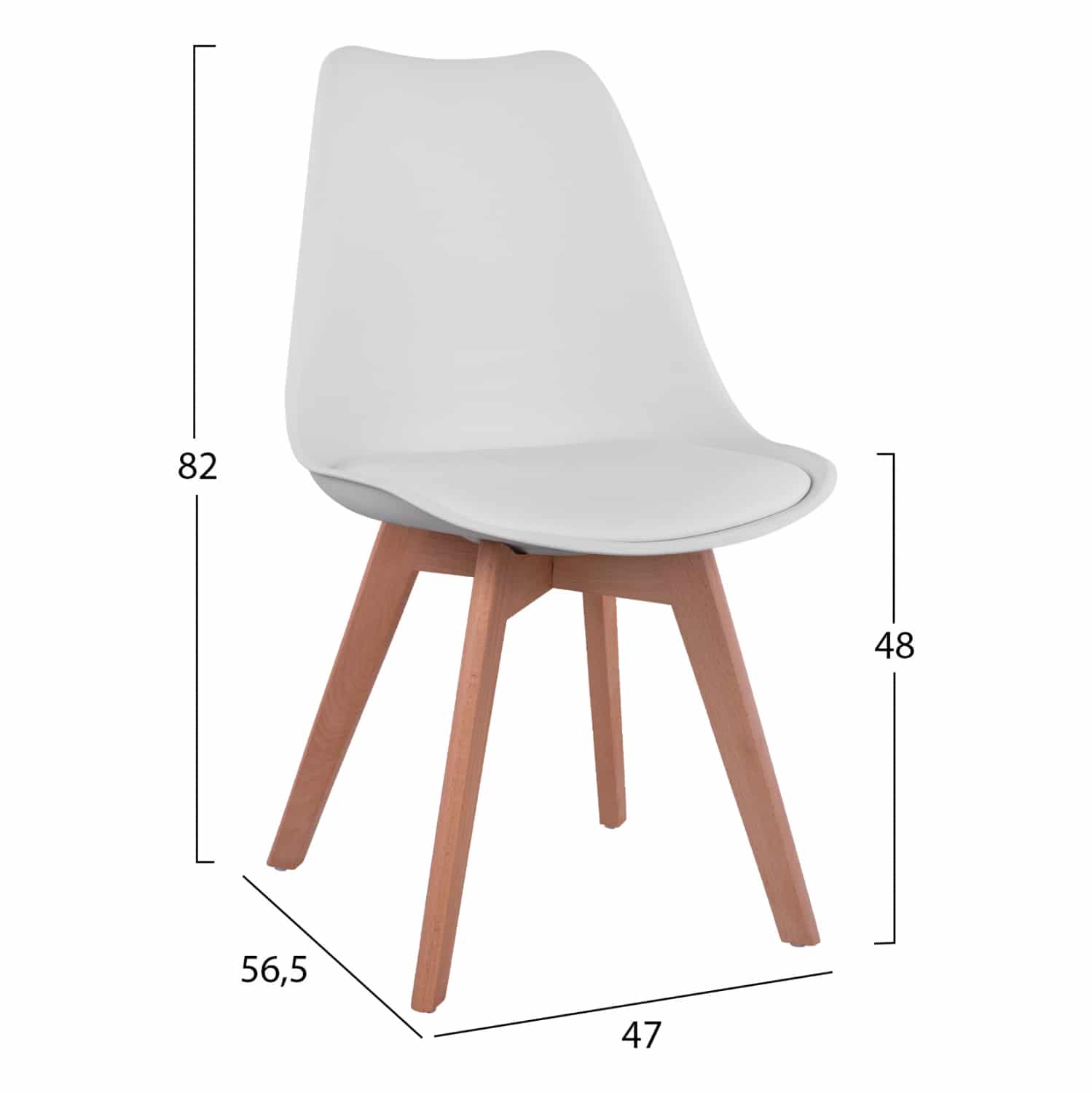 Τέσσερεις μοντέρνες καρέκλες σε έναν άψογο συνδυασμό ξύλου-πολυπροπυλενίου-τεχνοδέρματος σε λευκή και φυσική απόχρωση. Μια πρόταση που θα αναδείξει κάθε γωνία του σπιτιού σας.