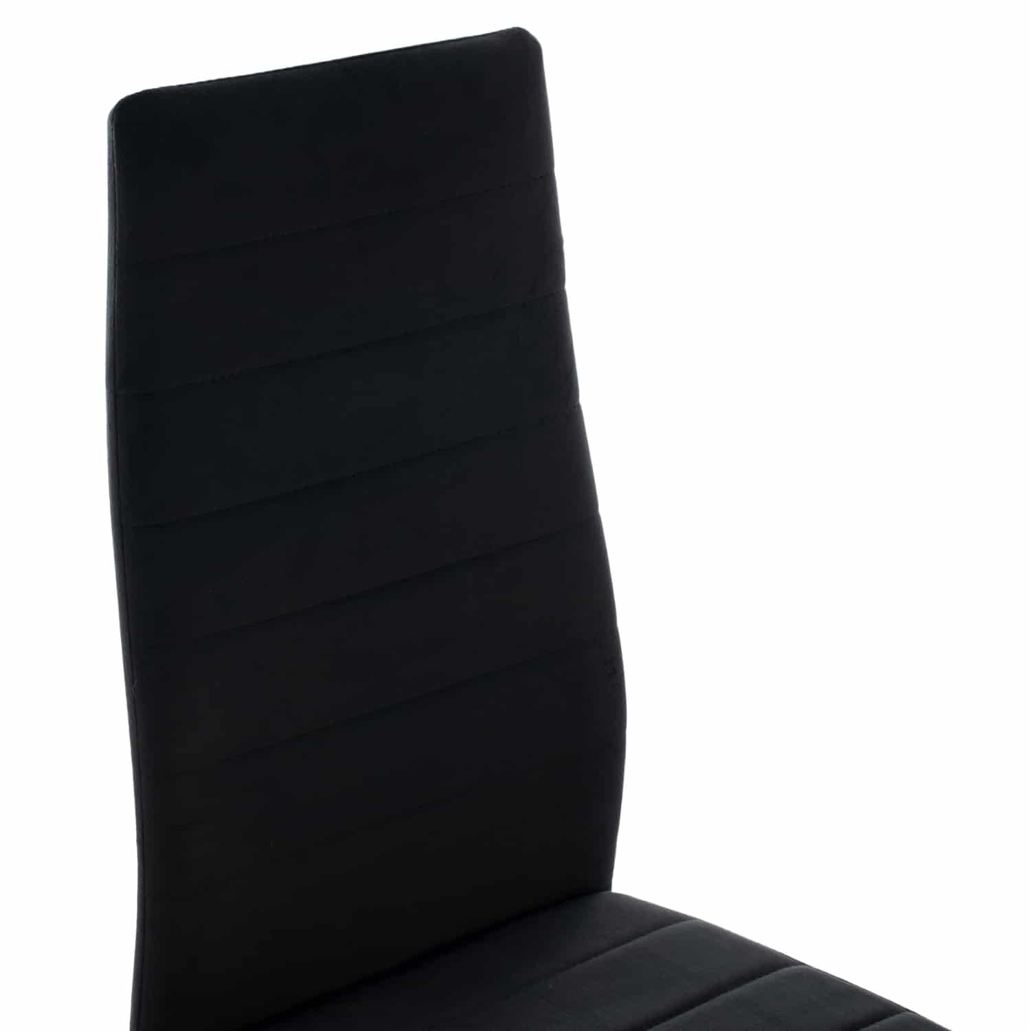 Ένα ορθογώνιο τραπέζι με σκελετό μεταλλικό σε ΜΑΥΡΟ χρώμα και κεραμική επιφάνεια με όψη ΜΑΥΡΟΥ ΜΑΡΜΑΡΟΥ, και 4 καρέκλες με ψηλή πλάτη και κάθισμα με επένδυση από βελούδινο ύφασμα σε ΜΑΥΡΟ χρώμα και μεταλλικό σκελετό σε ΜΑΥΡΟ χρώμα.