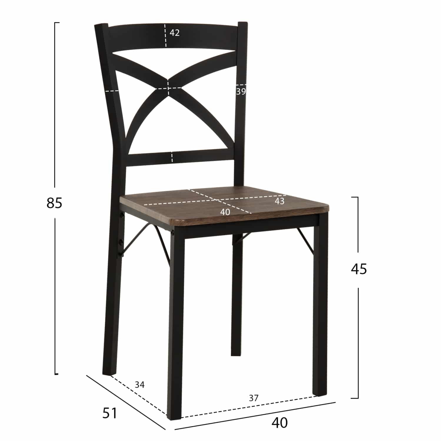 ΣΕΤ ΤΡΑΠΕΖΑΡΙΑΣ GOOSE 5ΤΜΧ HM9530.01 MDF ΚΑΡΥΔΙ-ΜΕΤΑΛΛΟ ΜΑΥΡΟ 120x80x75Yεκ.