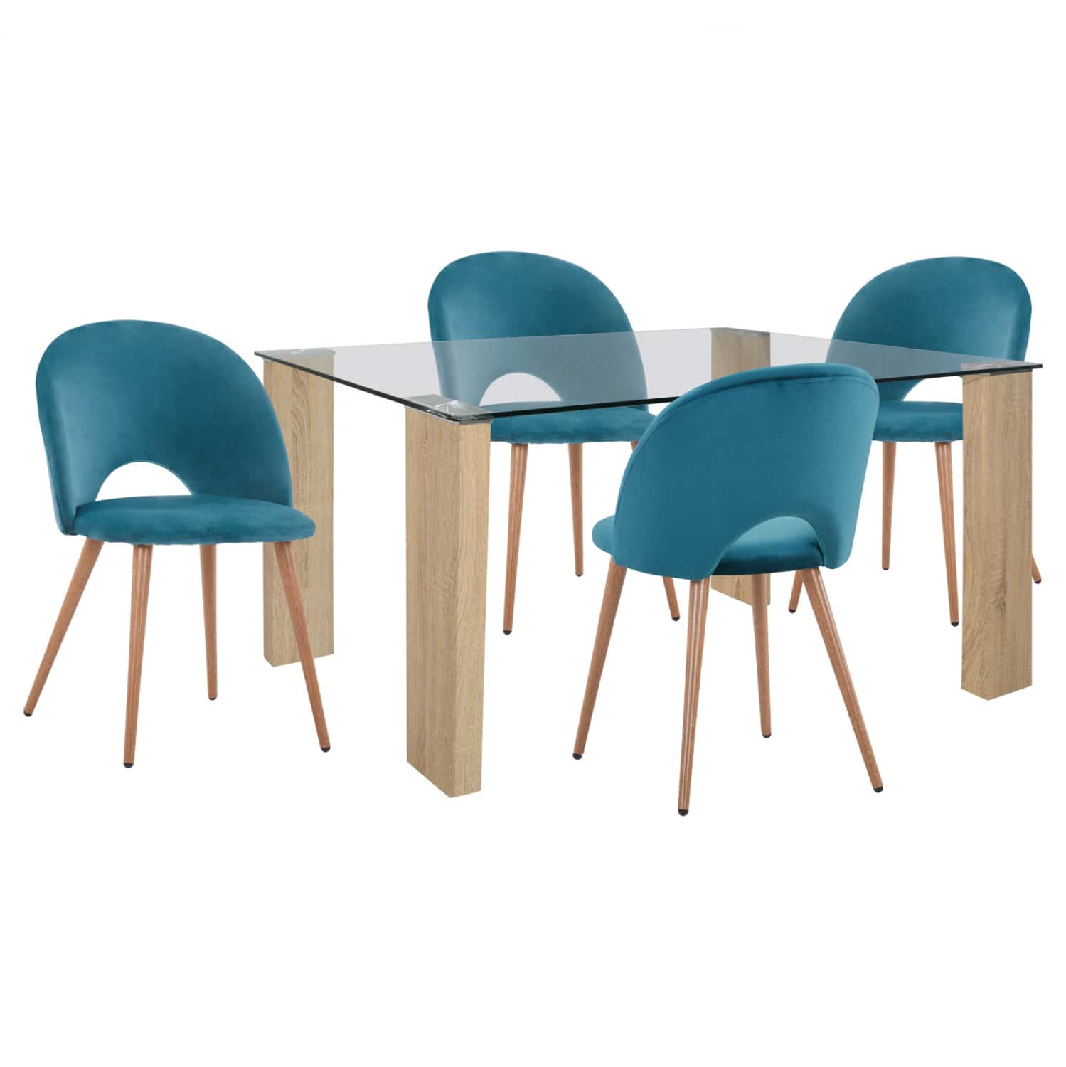 Και 4 καρέκλες SADIE από ύφασμα βελούδο σε τιρκουάζ απόχρωση.