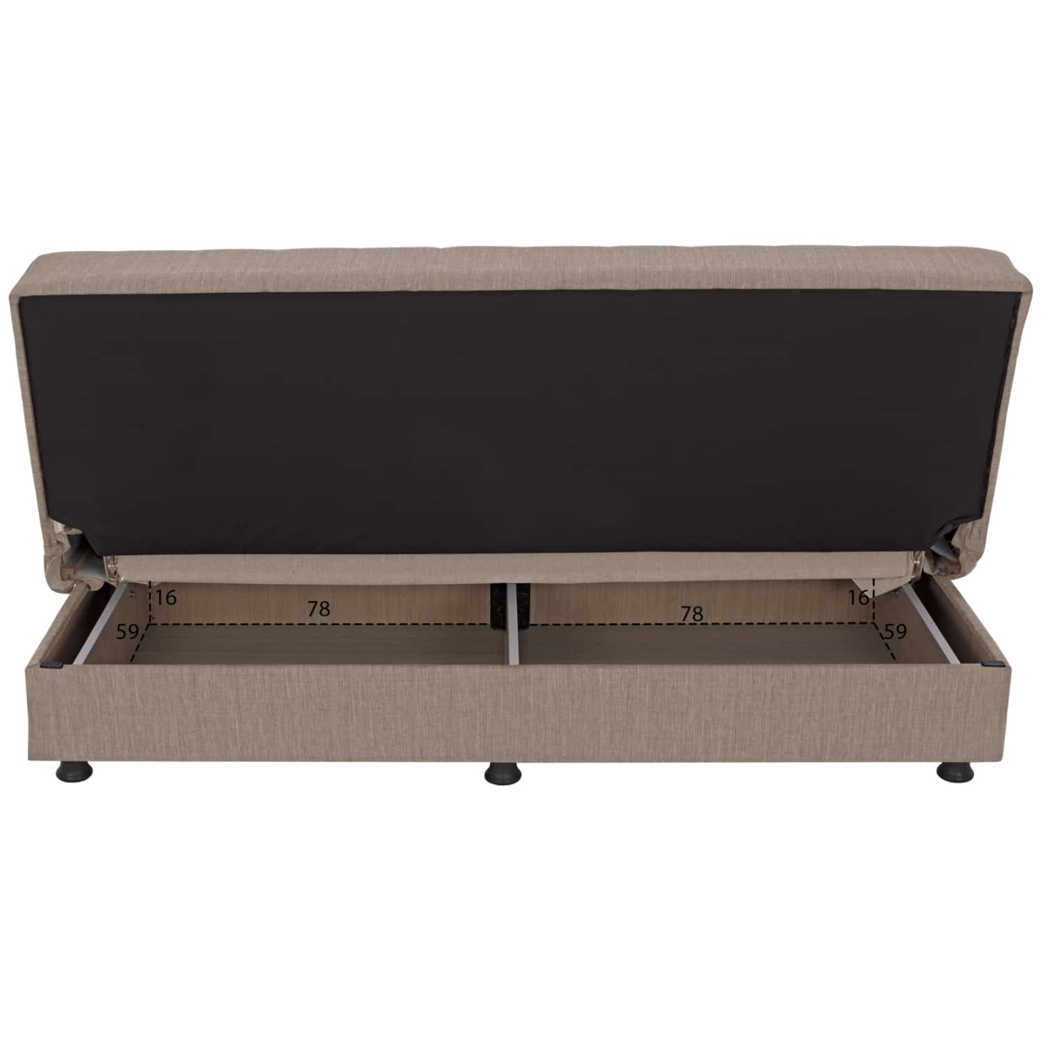 3-θέσιος καναπές-κρεβάτι με αποθηκευτικό χώρο χωρίς μπράτσα με 2 μαξιλαράκια—ΜΠΕΖ ύφασμα