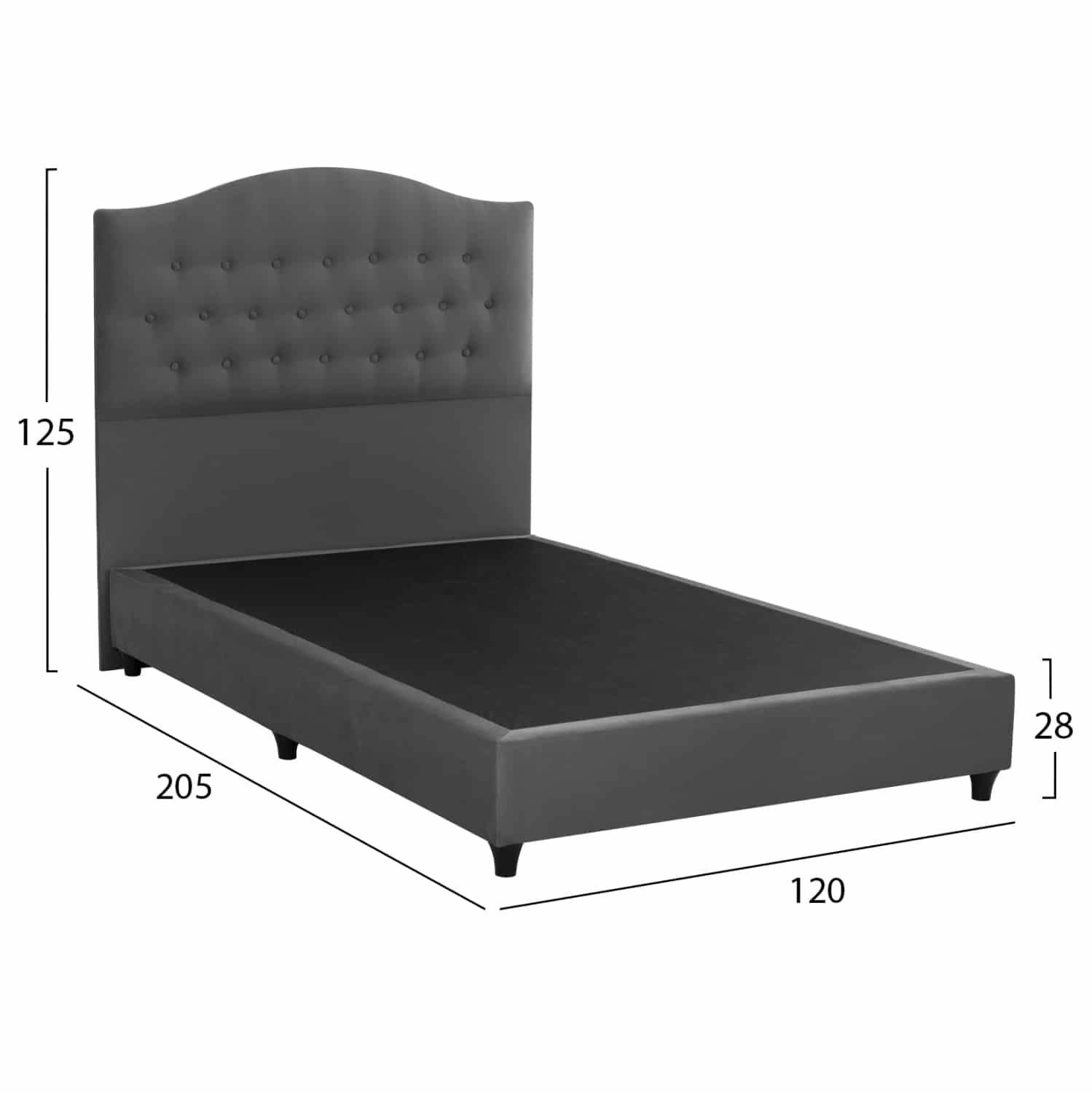 Κρεβάτι ημίδιπλο με επένδυση ΓΚΡΙ βελούδο—
