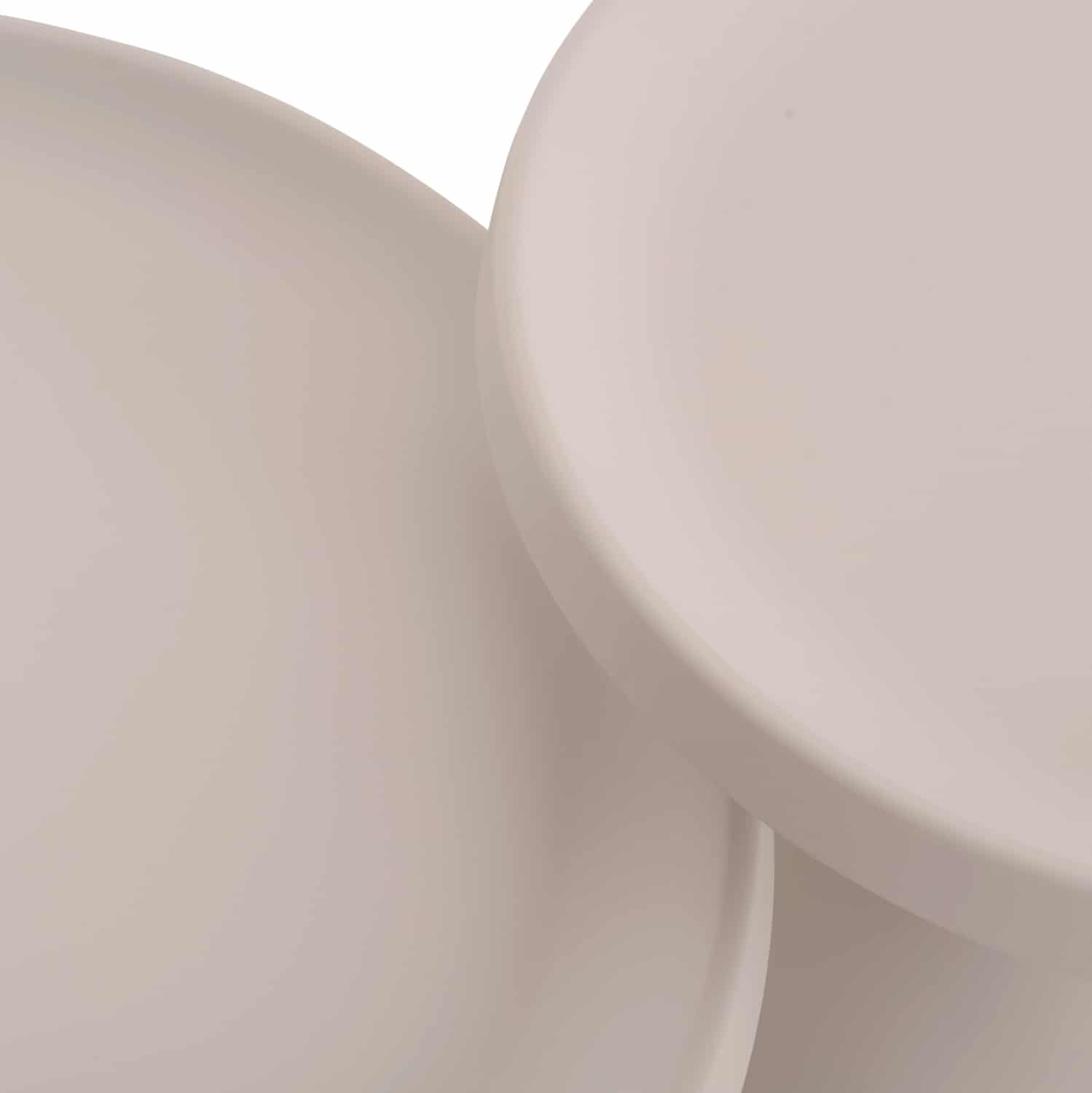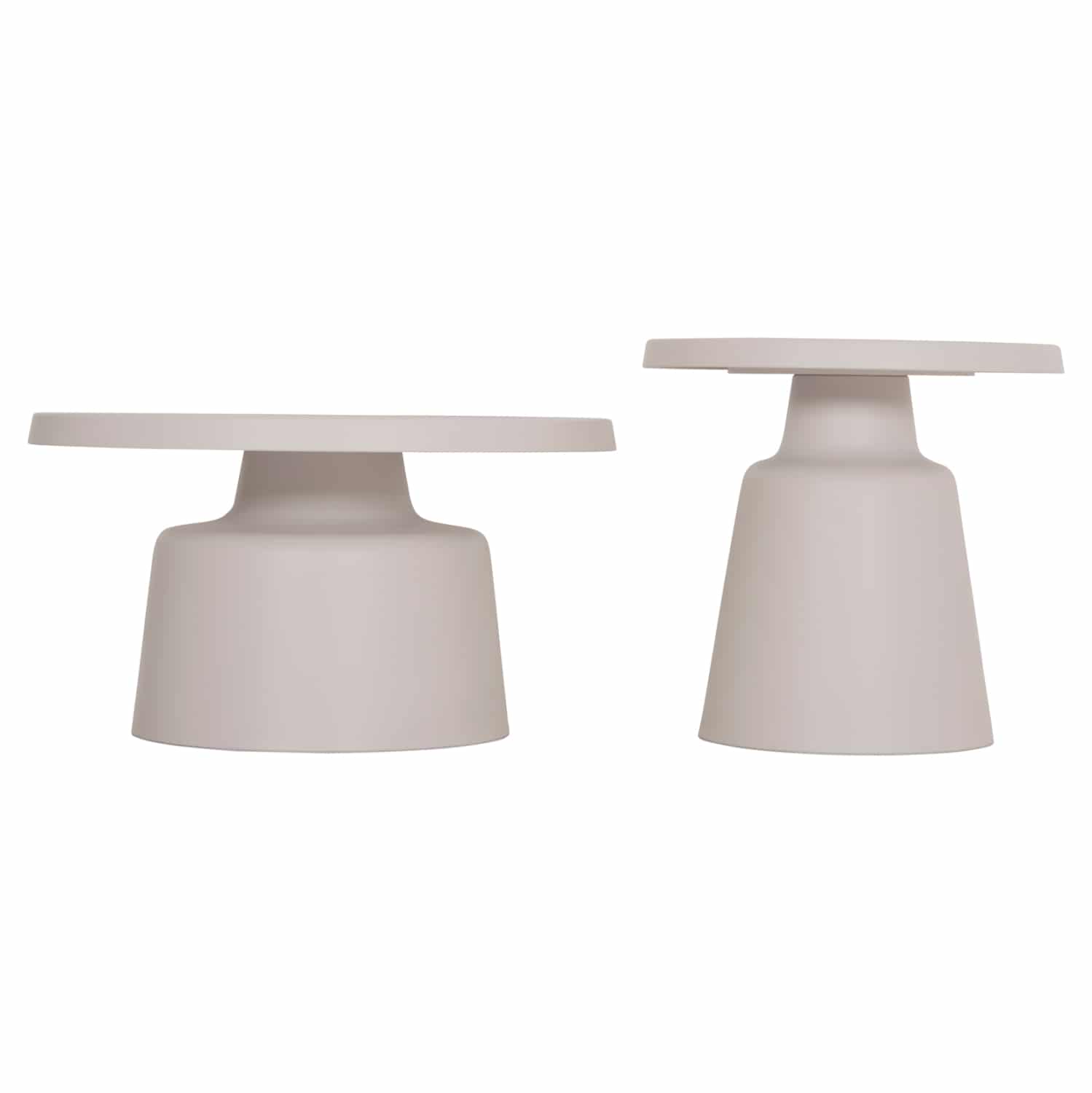 Αυτό το σετ 2 τραπεζιών για το σαλόνι είναι πανέμορφο και πρακτικότατο. Πρόκειται για 2 εξολοκλήρου μεταλλικά τραπεζάκια στρογγυλά διαφορετικών μεγεθών σε ΛΕΥΚΟ χρώμα. Το ένα έχει κωνική βάση που καταλήγει σε όμορφο «λαιμό», και το άλλο έχει κυλινδρική σχεδόν βάση. Ιδανικά τόσο για το σπίτι, όσο και για επαγγελματικούς χώρους.