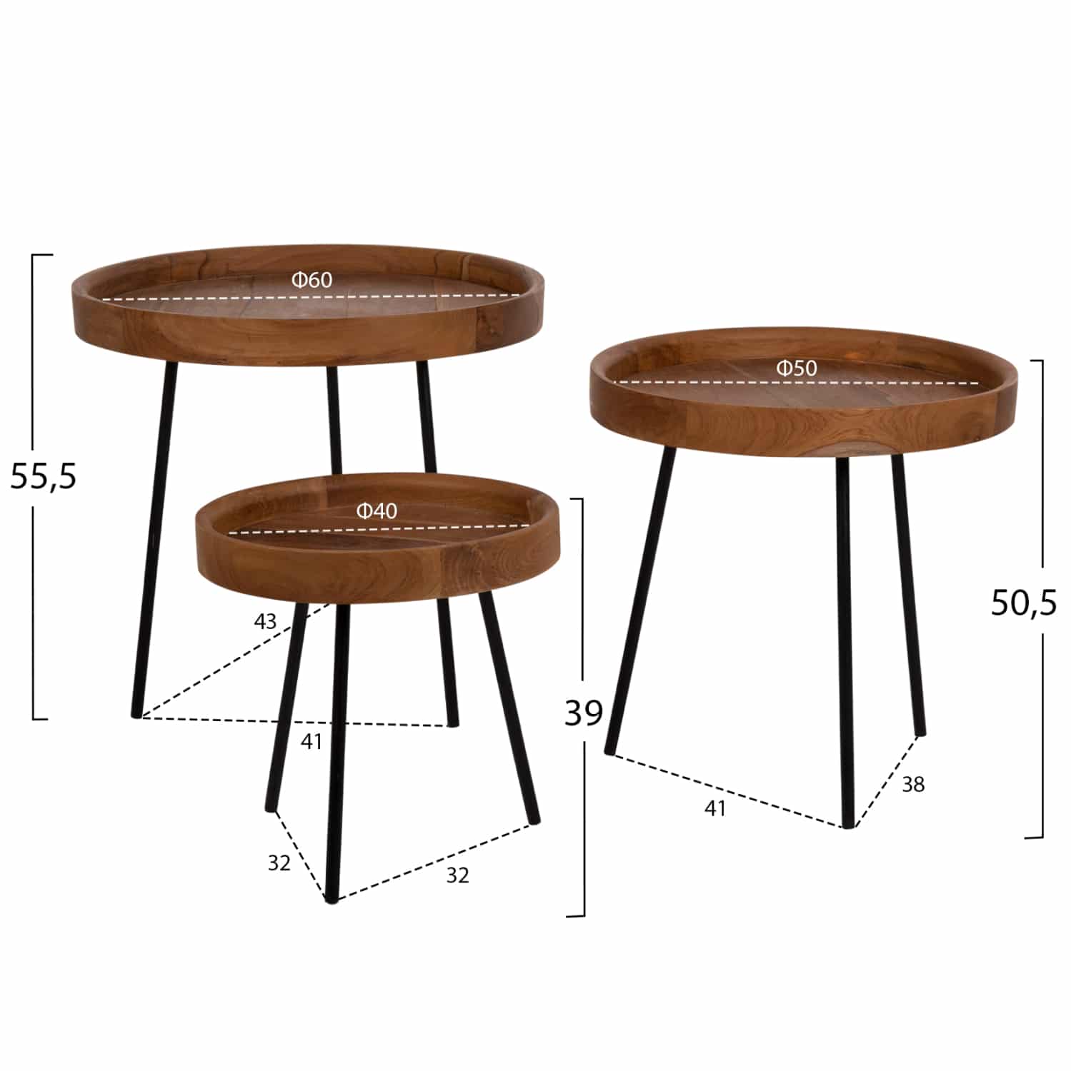 Διαστάσεις μεσαίου τραπεζιού: Φ50×50,5Υ εκ.