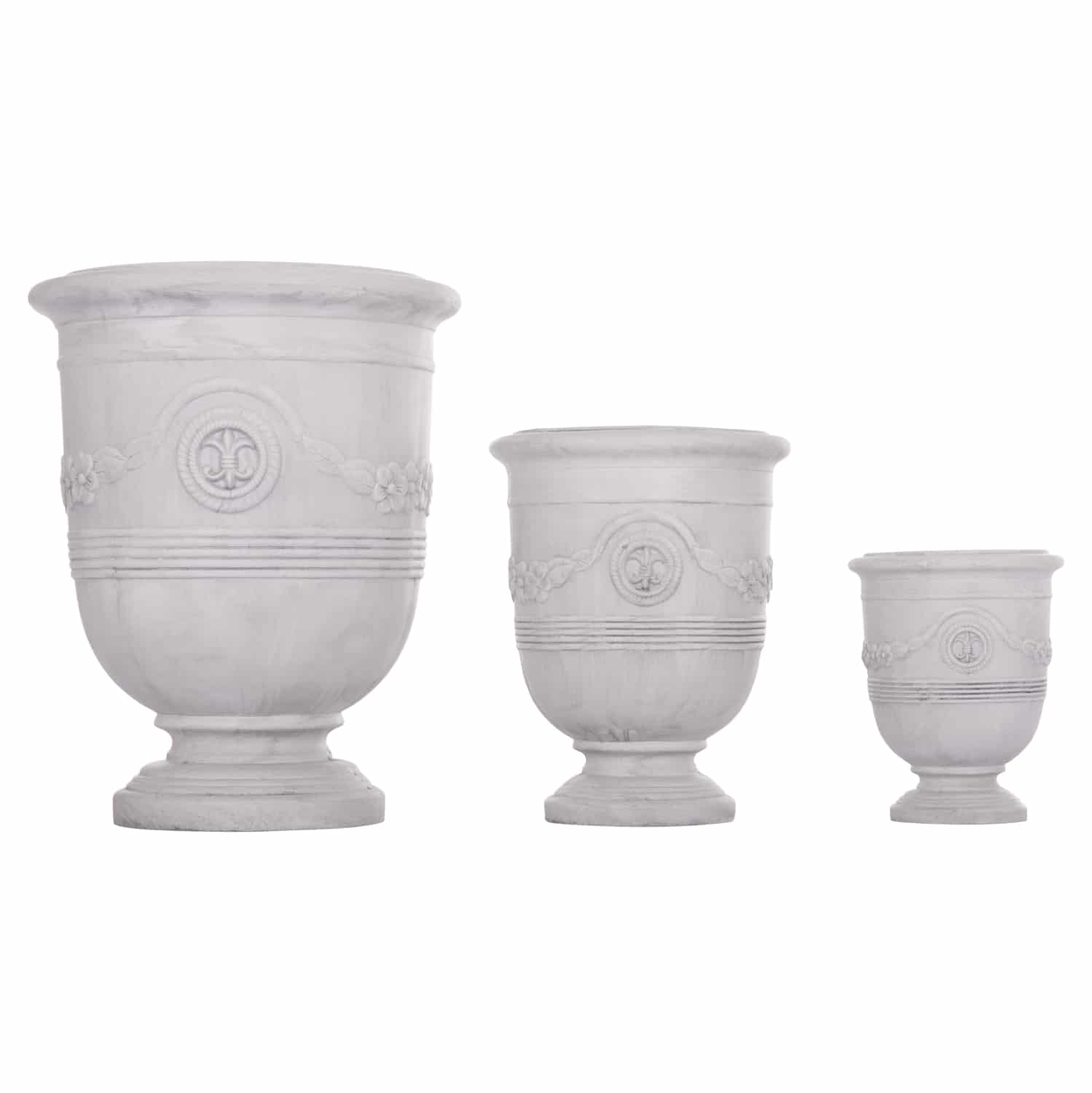 Σας παρουσιάζουμε την σειρά GARDENER που περιλαμβάνει σετ γλαστρών κατασκευασμένες από FiberClay και αποτελεί την τελευταία προσθήκη στην γκάμα μας. Αυτό το σετ αποτελείται από 3 στρογγυλές γλάστρες σε σχήμα κύπελλου με ανάγλυφα σχέδια σε διαφορετικά μεγέθη, και σε ΥΠΟΛΕΥΚΟ χρώμα. Ιδανικές για εξωτερικούς χώρους.