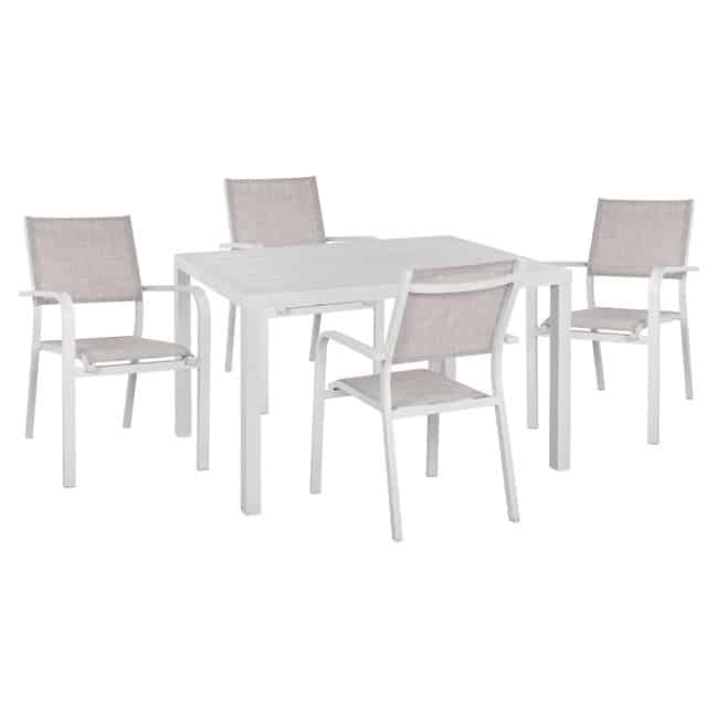 ΣΕΤ 5ΤΜΧ ΜΕ ΤΡΑΠΕΖΙ 120Χ80Χ75,5Υ & ΠΟΛΥΘΡΟΝΕΣ ΑΛΟΥΜΙΝΙΟΥ ΣΕ ΛΕΥΚΟ ΧΡΩΜΑ HM10523