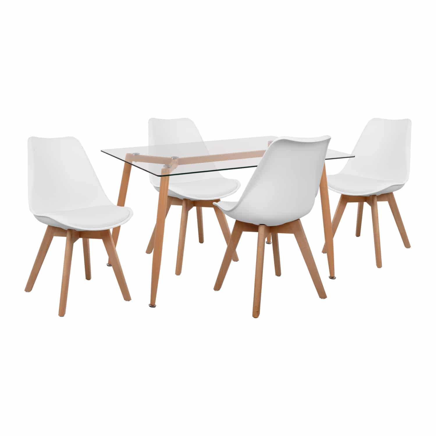 ΣΕΤ 5ΤΜΧ ΤΡΑΠΕΖΙ ΦΥΣΙΚΟ ΜΕ ΓΥΑΛΙ & ΚΑΡΕΚΛΕΣ VEGAS ΛΕΥΚΟ ΧΡΩΜΑ HM11085