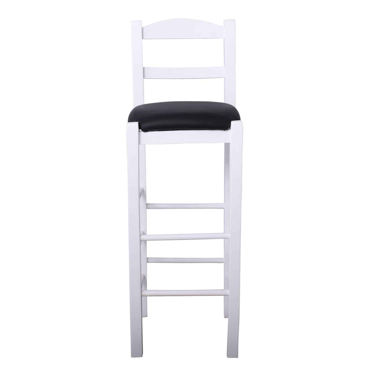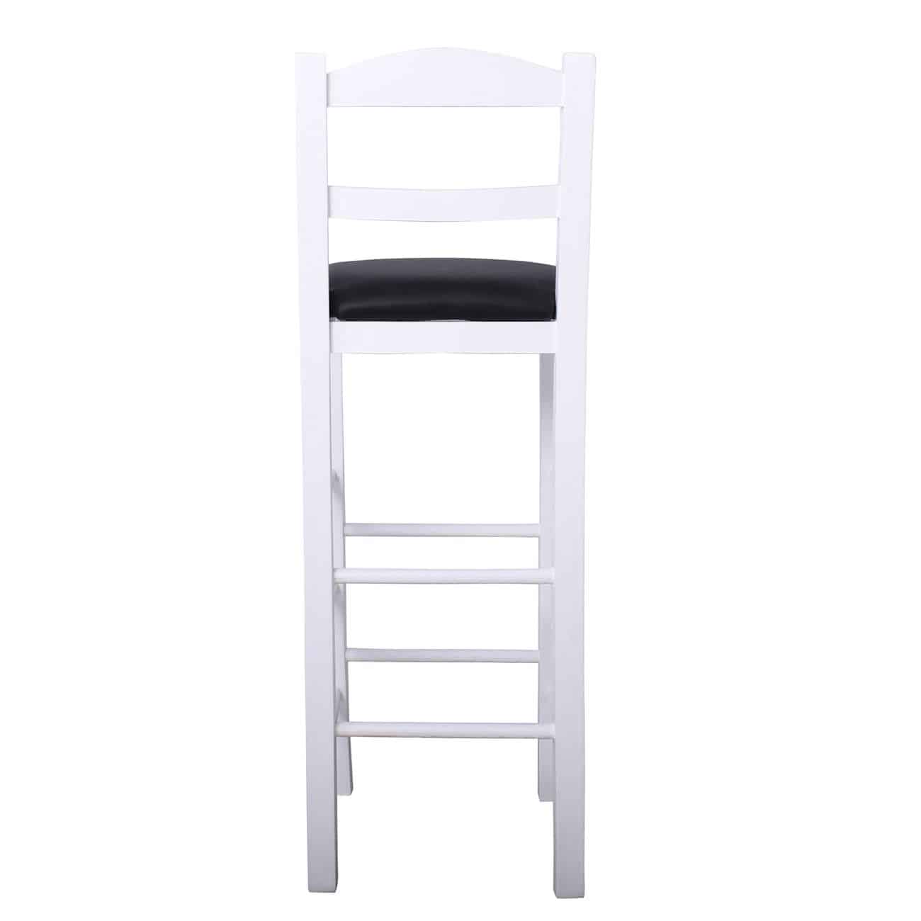 ΣΙΦΝΟΣ Σκαμπό BAR με Πλάτη, Οξιά Βαφή Εμποτισμός Λάκα Άσπρο, Κάθισμα Pu Μαύρο 36x37x78/107cm