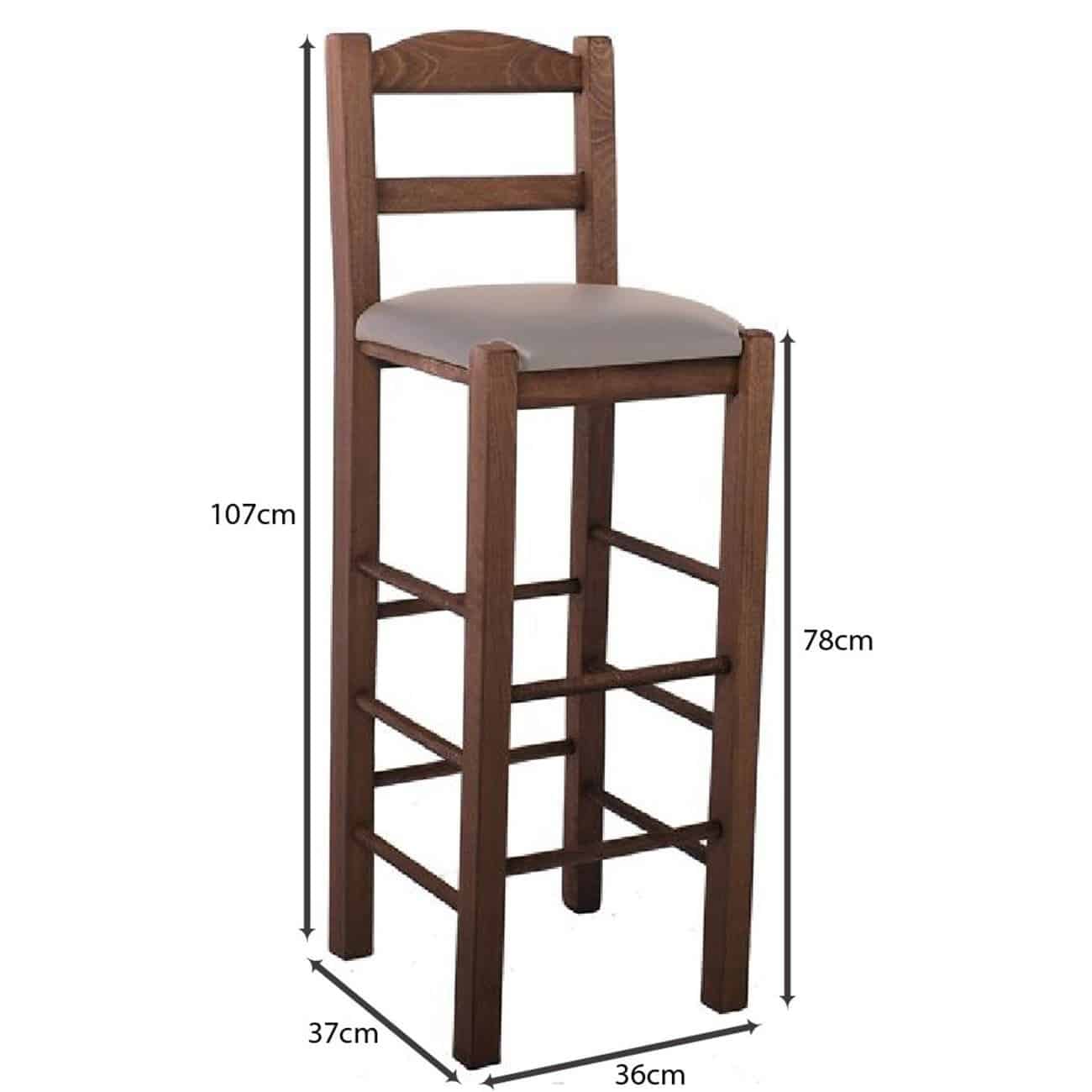 ΣΙΦΝΟΣ Σκαμπό BAR με Πλάτη, Οξιά Βαφή Εμποτισμός Καρυδί, Κάθισμα Pu Cappuccino 36x37x78/107cm
