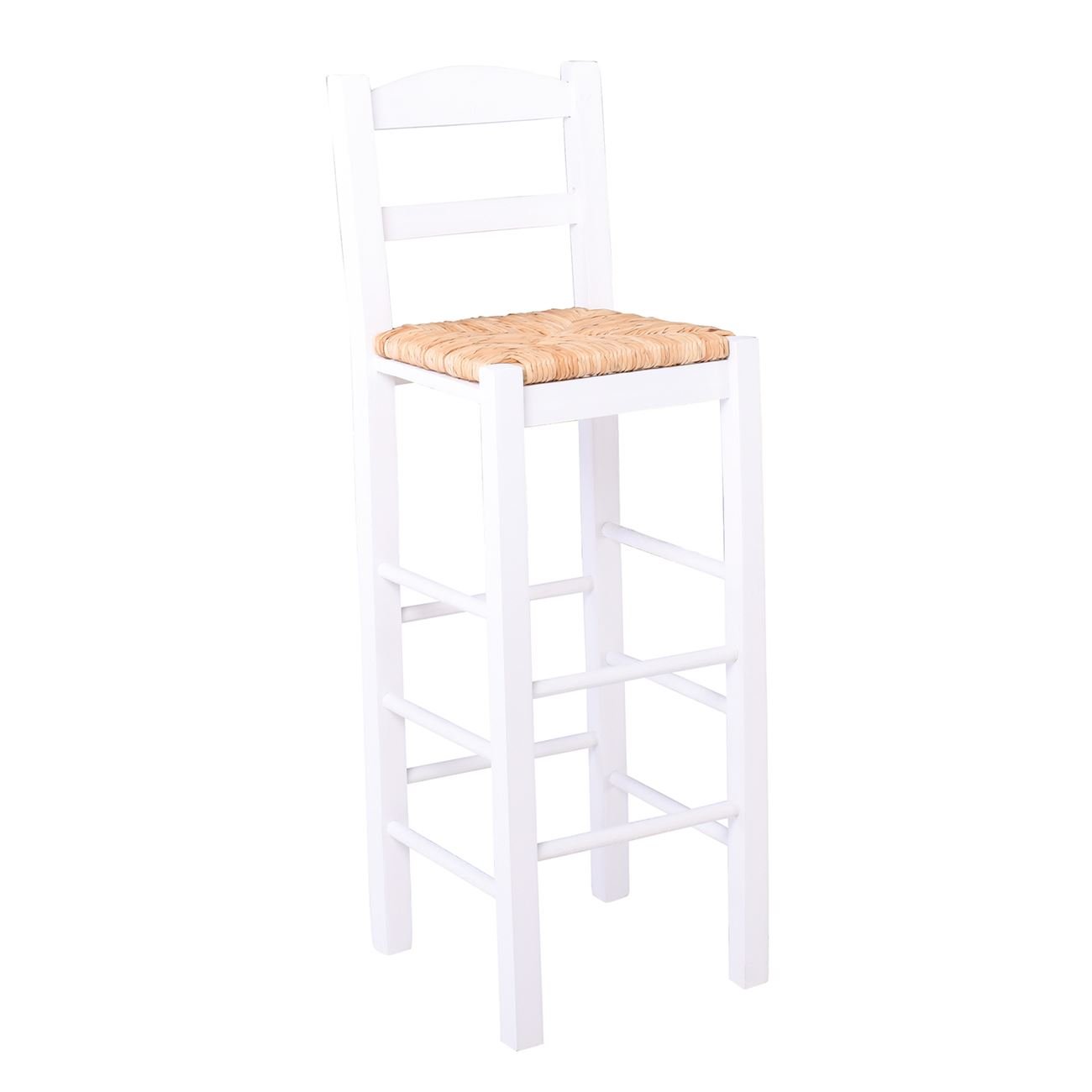 ΣΙΦΝΟΣ Σκαμπό BAR με Πλάτη, Οξιά Εμποτισμός Λάκα Άσπρο, Κάθισμα Ψάθα 36x37x76/107cm