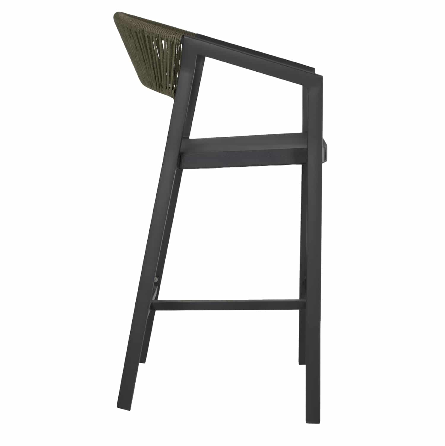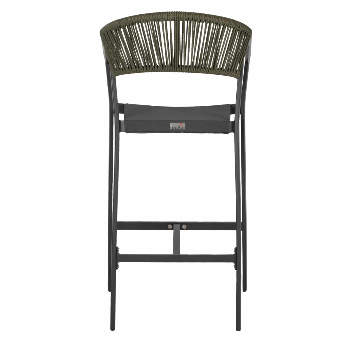 Η πλάτη του σκαμπό είναι επενδυμένη με πολυεστερικό RATTAN. Στα περισσότερα έπιπλα κήπου και γενικά σε έπιπλα για εξωτερικούς χώρους χρησιμοποιείται συνθετικό υλικό από PVC, δηλαδή τεχνητές ίνες υψηλής ποιότητας. Αυτό δίνει στην κατασκευή εξαιρετική αντοχή και ανθεκτικότητα σε ακραίες συνθήκες ζέστης ή κρύου.