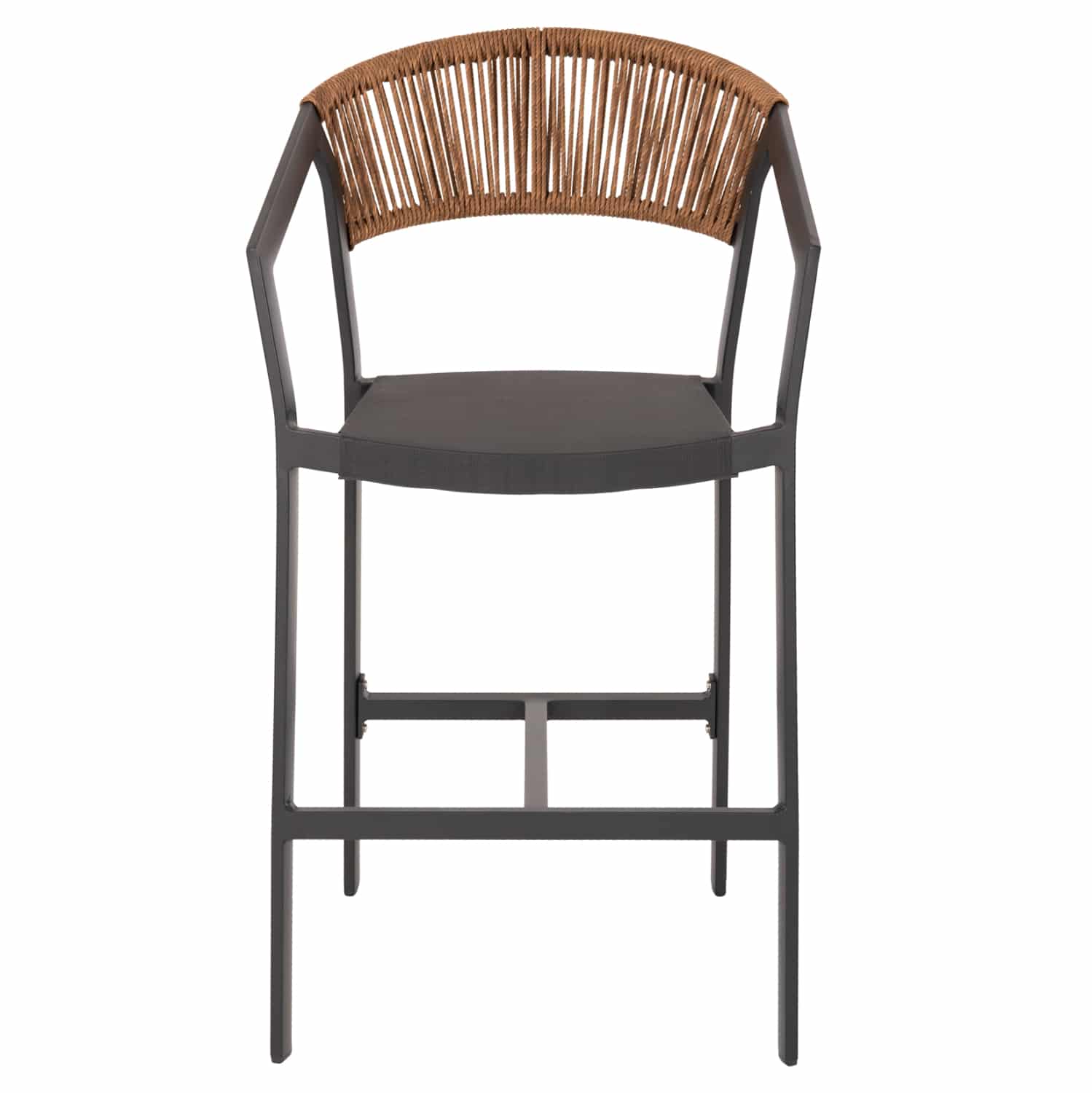 Η πλάτη του σκαμπό είναι επενδυμένη με πολυεστερικό RATTAN. Στα περισσότερα έπιπλα κήπου και γενικά σε έπιπλα για εξωτερικούς χώρους χρησιμοποιείται συνθετικό υλικό από PVC, δηλαδή τεχνητές ίνες υψηλής ποιότητας. Αυτό δίνει στην κατασκευή εξαιρετική αντοχή και ανθεκτικότητα σε ακραίες συνθήκες ζέστης ή κρύου.
