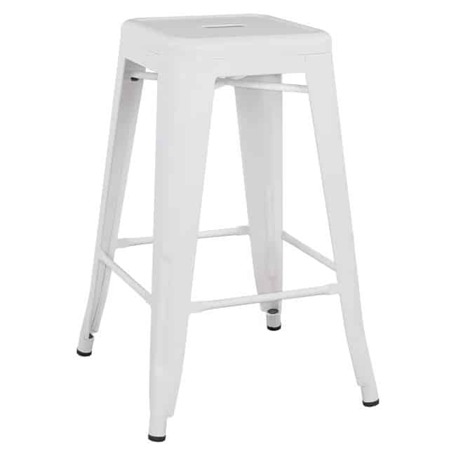 Το σκαμπό MELITA μεσαίου ύψους είναι κατασκευασμένο από μέταλλο σε λευκή ματ απόχρωση, σχεδιασμένο σε industrial στιλ.
