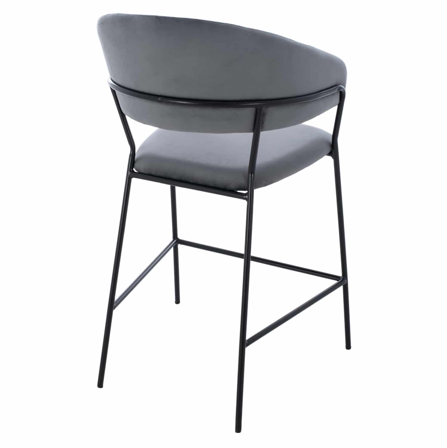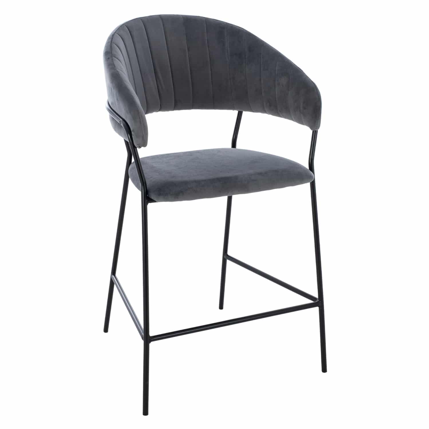 Σκαμπό μεσαίου ύψους Theodore, από βελούδινο ύφασμα σε γκρι με μαύρο σκελετό 60x55x100 εκ.