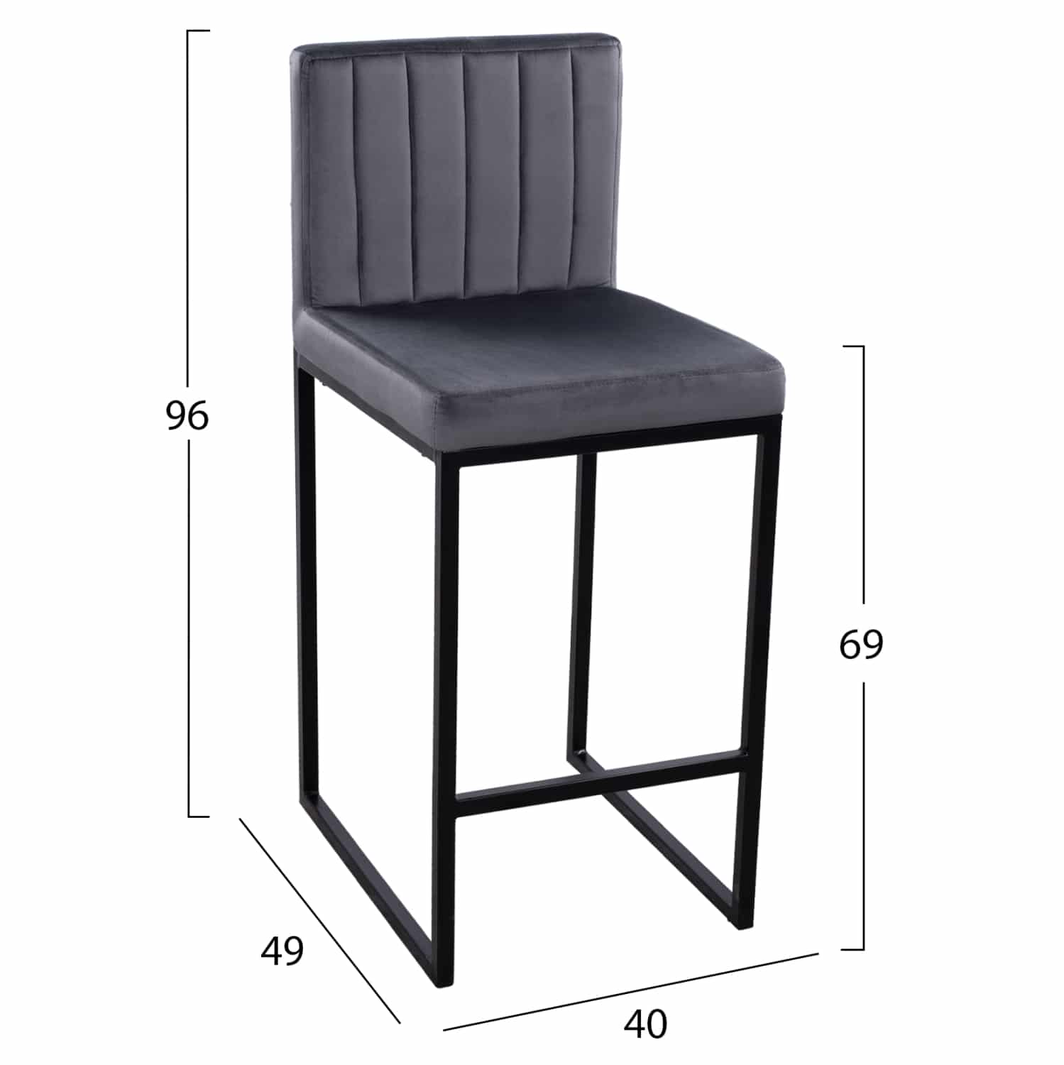 ΣΚΑΜΠΟ ΜΕΣΑΙΟΥ ΥΨΟΥΣ PIPER ΒΕΛΟΥΔΟ ΓΚΡΙ & ΜΑΥΡΟ ΜΕΤΑΛΛΙΚΟ ΣΚΕΛΕΤΟ HM8525.01 40x49x96Υ εκ. HM8525.01