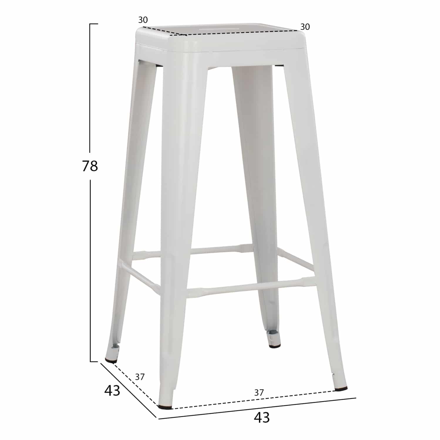 Σκαμπό Μπαρ MELITA-PRO σε τετράγωνη υλοποίηση, εξολοκλήρου μεταλλικό σε ΛΕΥΚΟ ΜΑΤ χρώμα. Σε μοντέρνο και λιτό design INDUSTRIAL, χωρίς μπράτσα και πλάτη, αποτελεί την τελευταία τάση στην κατηγορία του.