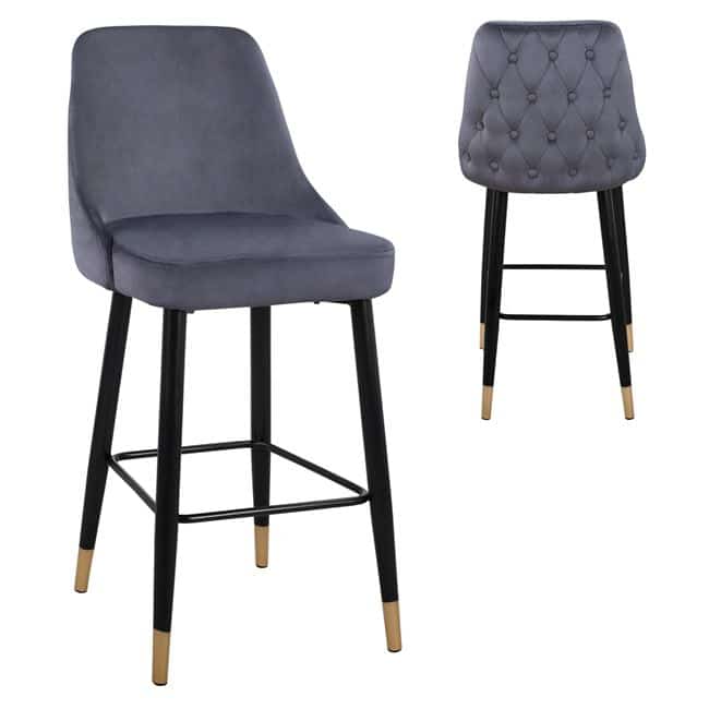 Το σκαμπό SERENITY είναι επενδυμένο με ύφασμα βελούδο σε γκρι απόχρωση με μεταλλικό σκελετό σε μαύρη ματ απόχρωση και χρυσές λεπτομερείς.