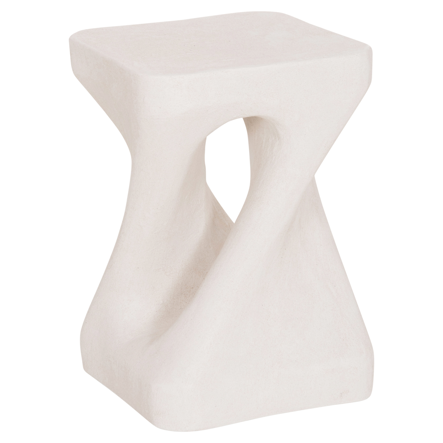 Το σκαμπό είναι κατασκευασμένο από polyresin (πολυρητίνη), ένα σύγχρονο συνθετικό υλικό υψηλής αντοχής που χρησιμοποιείται ευρέως σε premium διακοσμητικά αντικείμενα και έπιπλα design. Η πολυρητίνη προσφέρει σταθερότητα, ανθεκτικότητα στη χρήση και δυνατότητα δημιουργίας σύνθετων σχημάτων με ιδιαίτερη αισθητική. Η σαγρέ υφή στην επιφάνεια ενισχύει την αίσθηση φυσικού υλικού και χαρίζει στο αντικείμενο μια σύγχρονη, γλυπτική παρουσία.