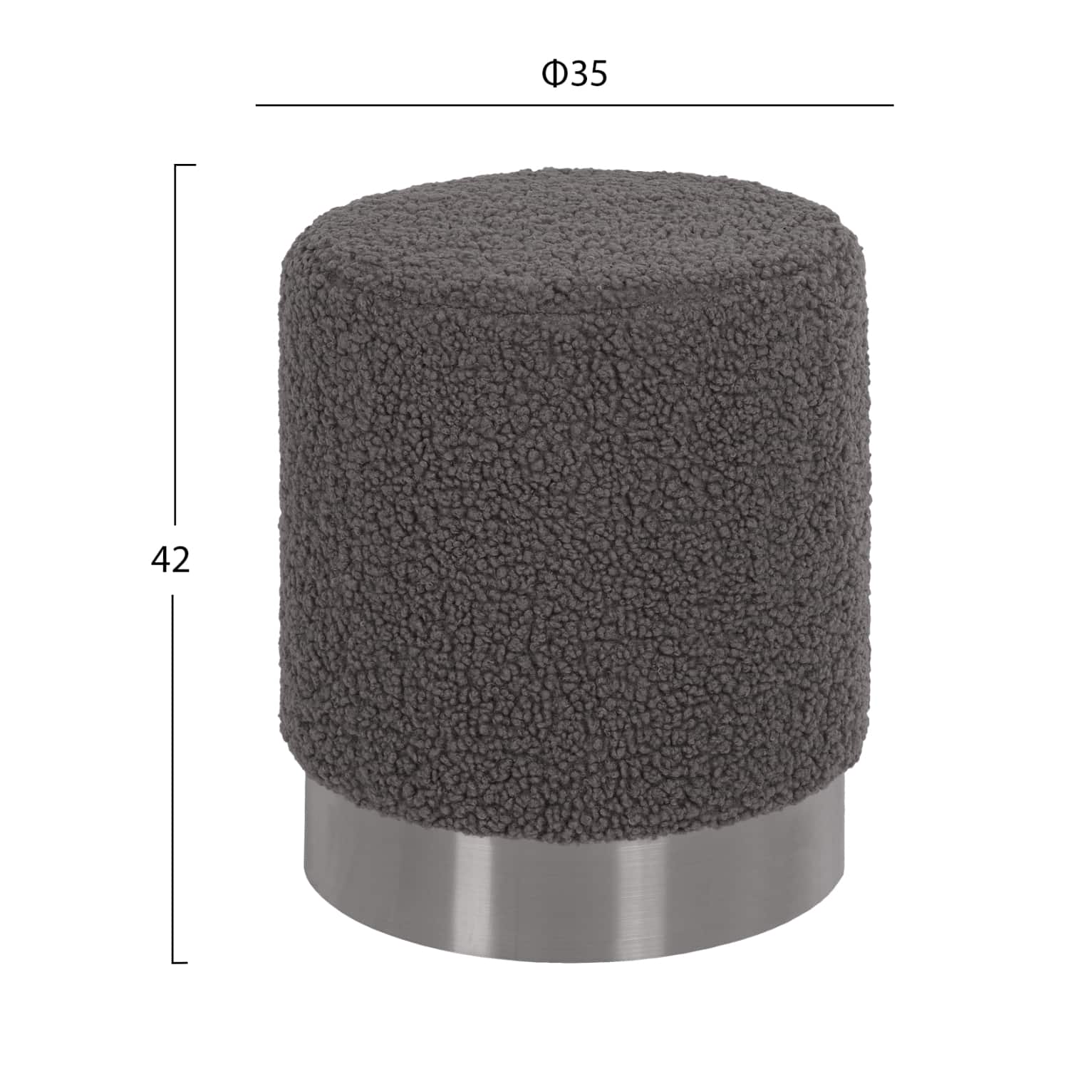 Το LEVY είναι ένα κυλινδρικό σκαμπό/πουφ επενδυμένο με ζεστό μπουκλέ ύφασμα σε ΓΚΡΙ χρώμα. Η ιδιαιτερότητα αυτού του σκαμπό, είναι ότι αντί για πόδια στηρίζεται όμορφα σε μια κυλινδρική βάση που έρχεται ως φυσική συνέχεια του καθίσματος, σε ασημί χρώμα. Το σκαμπό είναι κομψότατο και συγχρόνως λιτό και ποιοτικό. Είναι σίγουρο ότι όποιος το δει αλλά κυρίως όποιος το χρησιμοποιήσει θα μπει άμεσα στην διαδικασία να αγοράσει το ίδιο.