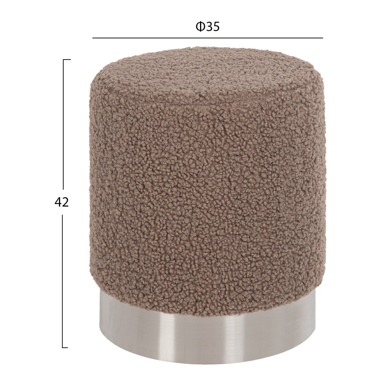 Το LEVY είναι ένα κυλινδρικό σκαμπό/πουφ επενδυμένο με ζεστό μπουκλέ ύφασμα σε απαλό ΑΝΟΙΧΤΟ ΚΑΦΕ χρώμα. Η ιδιαιτερότητα αυτού του σκαμπό, είναι ότι αντί για πόδια στηρίζεται όμορφα σε μια κυλινδρική βάση που έρχεται ως φυσική συνέχεια του καθίσματος, σε ασημί χρώμα. Το σκαμπό είναι κομψότατο και συγχρόνως λιτό και ποιοτικό. Είναι σίγουρο ότι όποιος το δει αλλά κυρίως όποιος το χρησιμοποιήσει θα μπει άμεσα στην διαδικασία να αγοράσει το ίδιο.