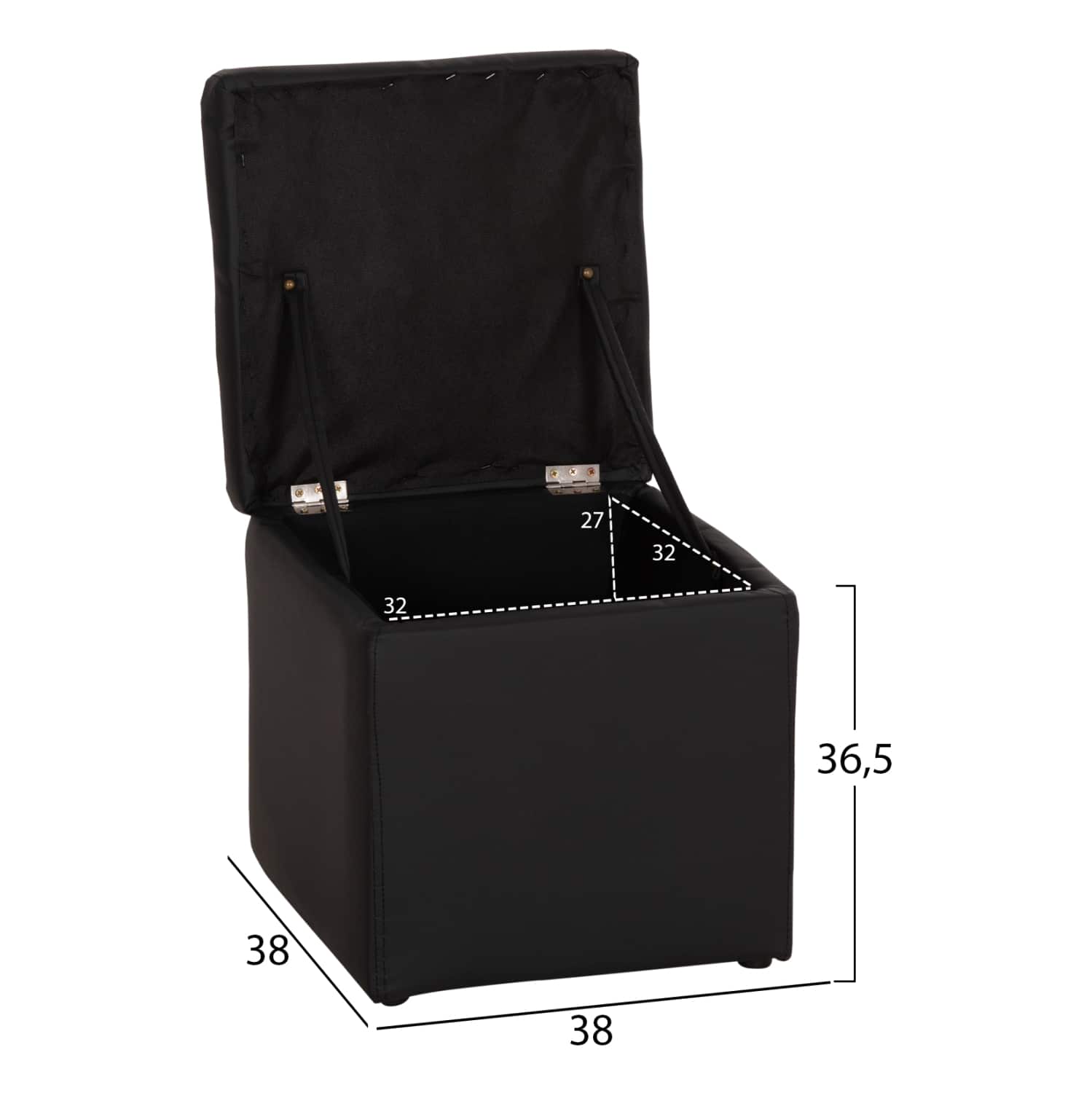 ΣΚΑΜΠΩ ΜΕ ΑΠΟΘΗΚΕΥΤΙΚΟ ΧΩΡΟ PU ΜΑΥΡΟ CUBE HM224.01 38x38x36.5Υεκ. HM224.01